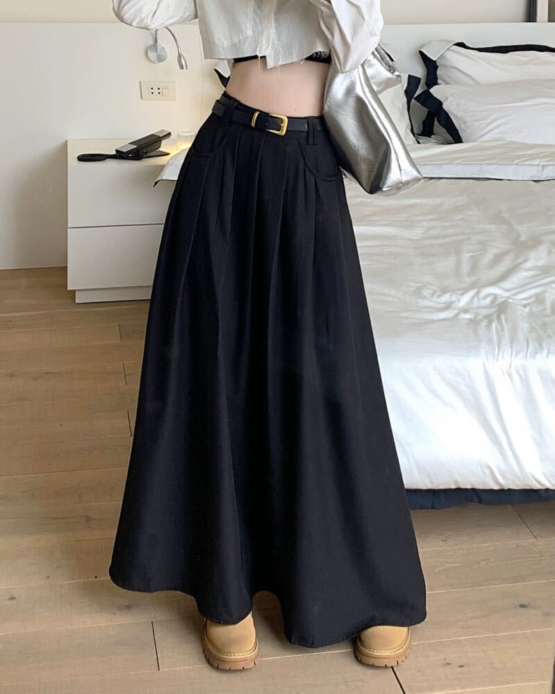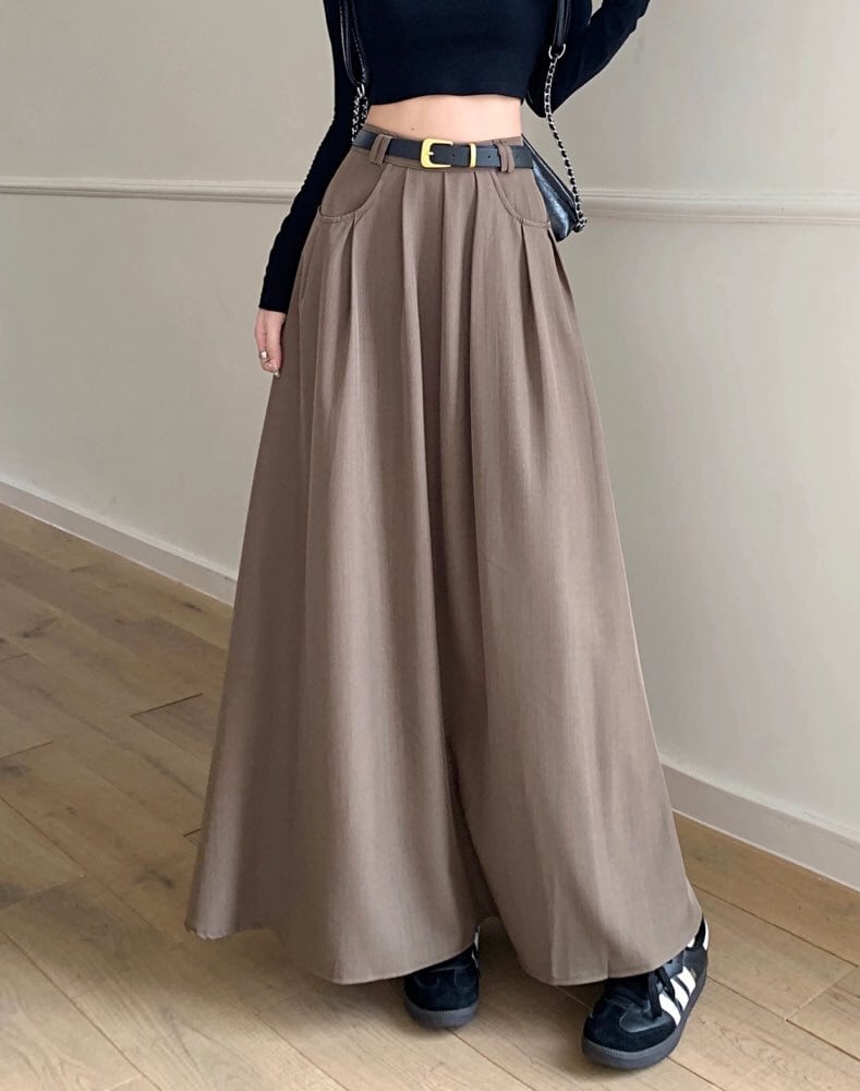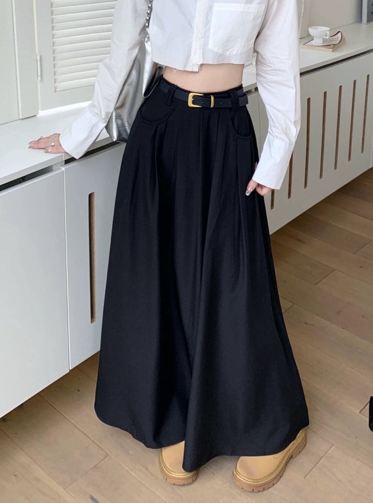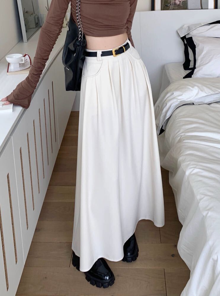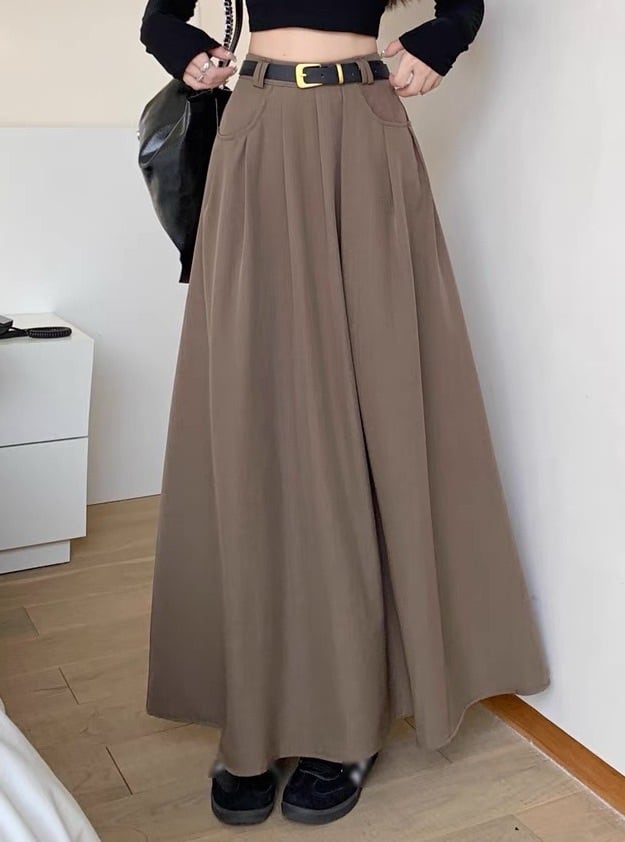 歩くたびひらりと揺れる美シルエット タックインロングフレアスカート ロング丈 大人可愛い おしゃれ カジュアル フレア ポケット 脚長 着回し 体型カバー 大きいサイズ 韓国 CH10969