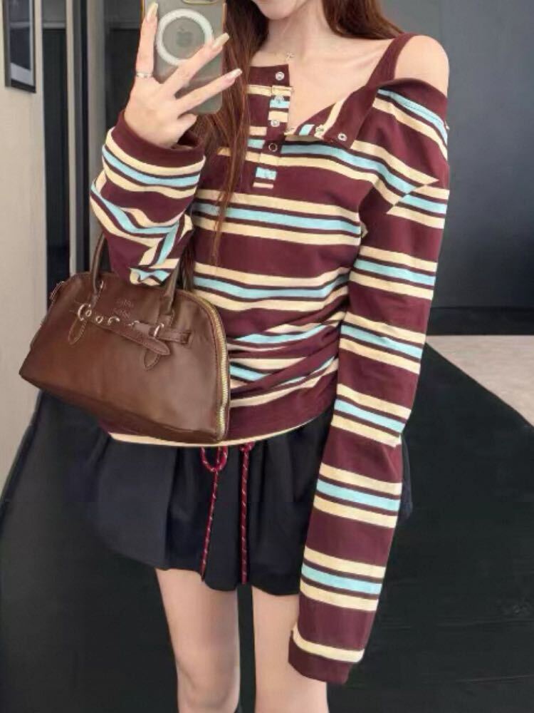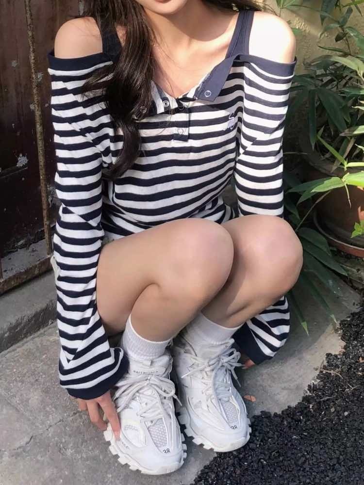 さりげない肌見せで女度UP♡オープンショルダーがポイントのボーダーロンTです。