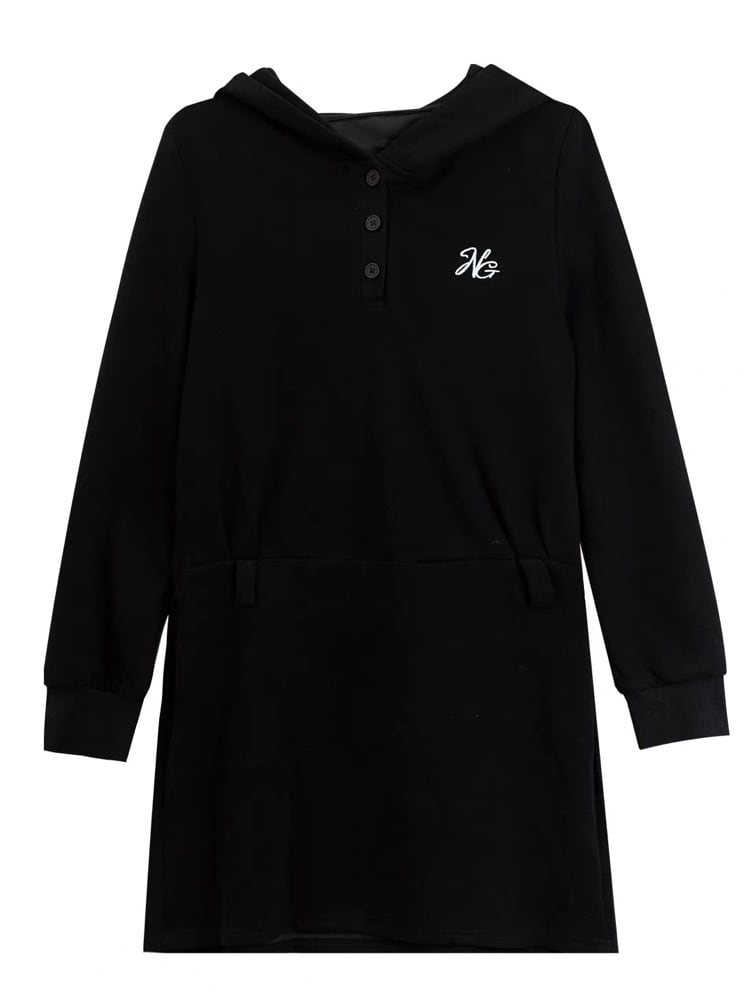 スタイルも気分もアップ フード付ミニ丈パーカーワンピース ミニ丈 おしゃれ 大人可愛い 刺繍 ロゴ パーカー くびれ スタイルアップ 体型カバー 大きいサイズ 韓国 CH10977