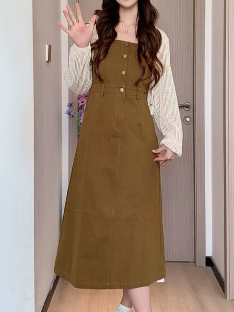 "透かし編みボレロ×フロントボタンジャンパースカート"