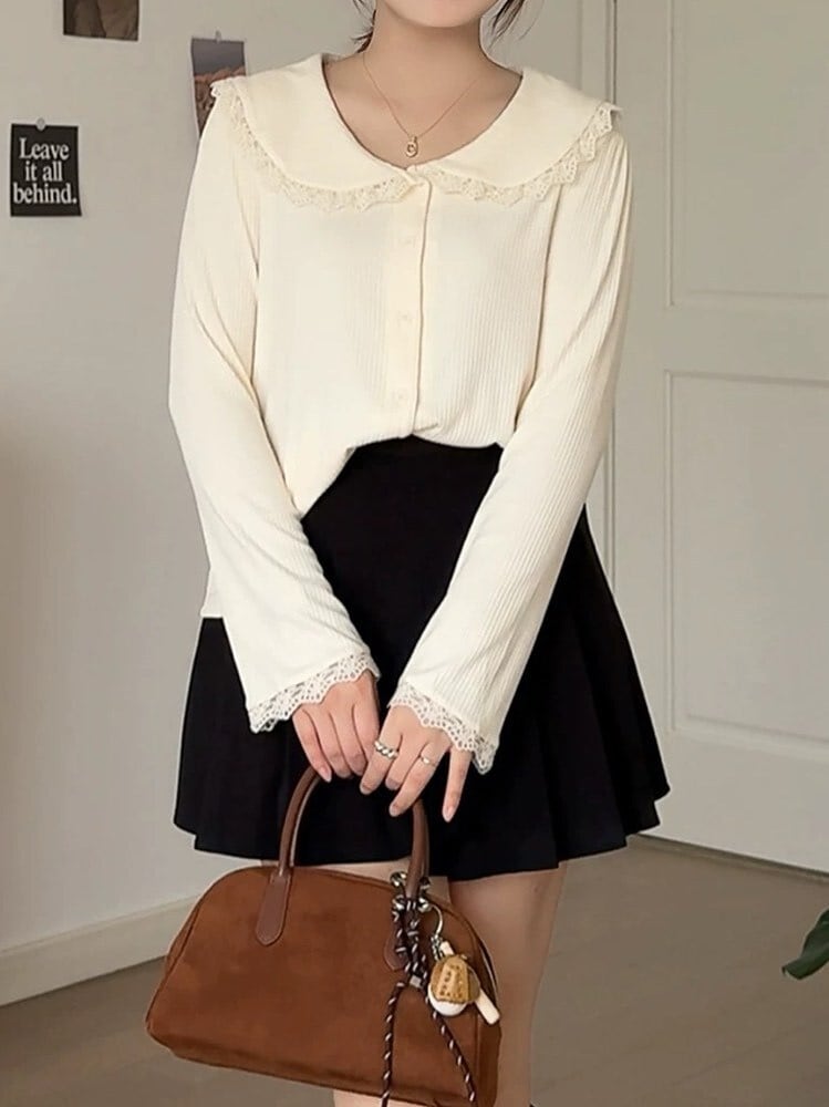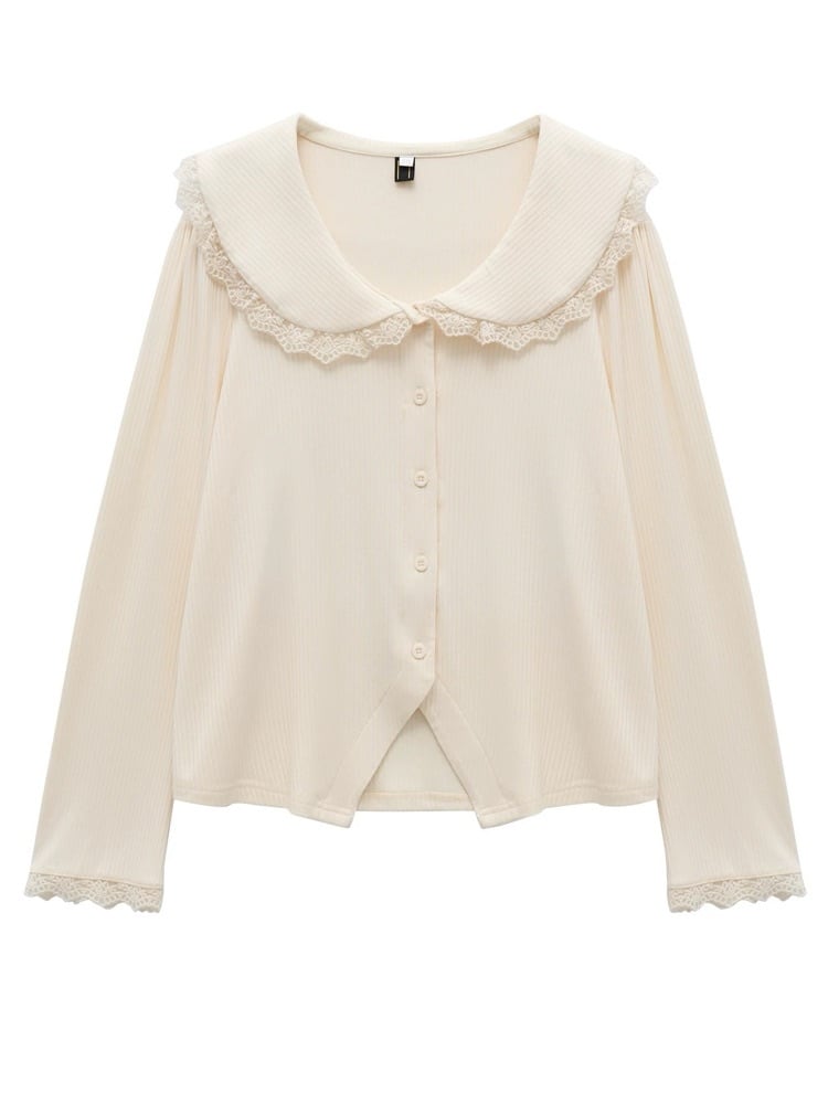 まるみのあるフォルムがキュートな丸襟と、繊細なレース使いが可愛いリブブラウス♡