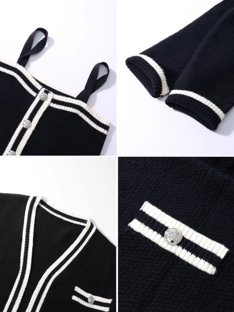 モノクロ配色が上品な印象♡ニットタンクトップ&カーディガンの2点セットです。