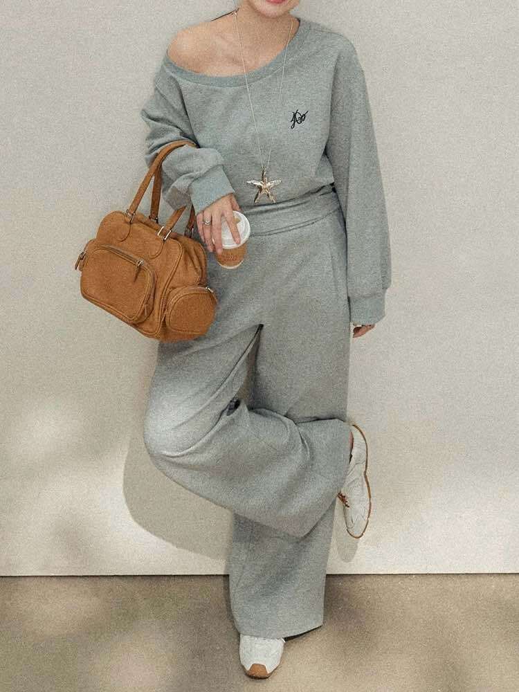 選べるボトムで自分だけのリラックススタイル♡ ワンポイント刺繍スウェットセットアップ 2点セット おしゃれ 大人可愛い 刺繍 リラクシー こなれ感 カジュアル 着回し デイリー ルームウェア 体型カバー 大きいサイズ 韓国 CH11118