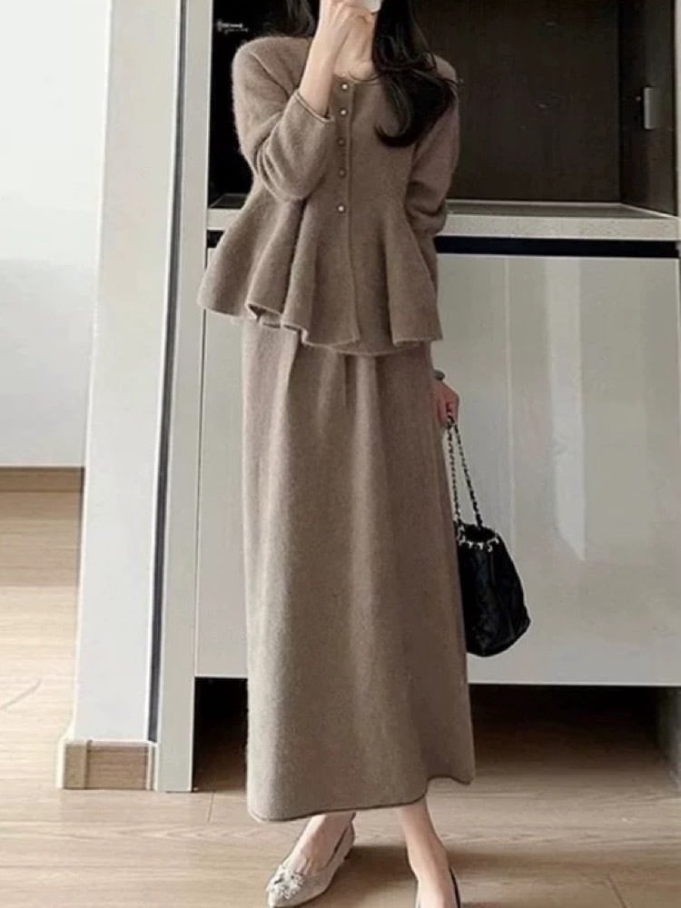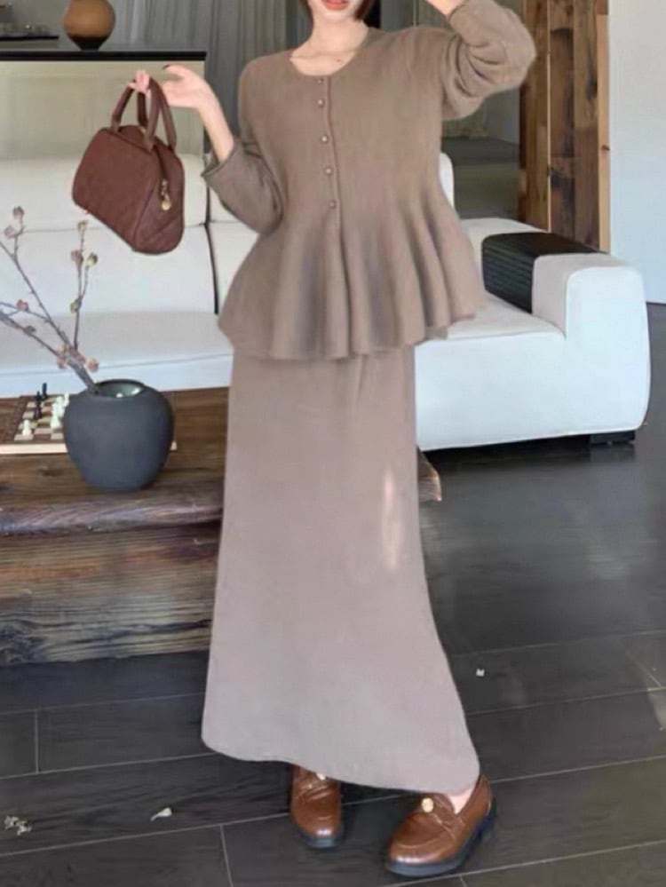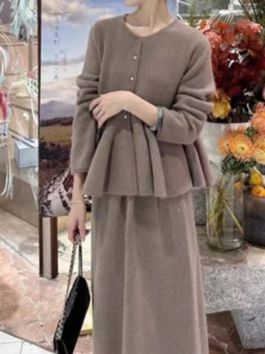大人の品格をまとう ペプラムデザインセットアップ フォーマル カジュアル 大人可愛い お洒落 きちんと 体型カバー 大きいサイズ 韓国 CH11148