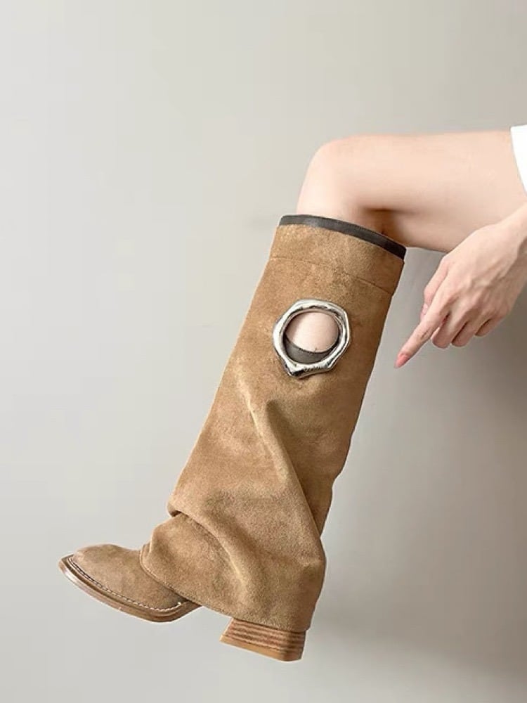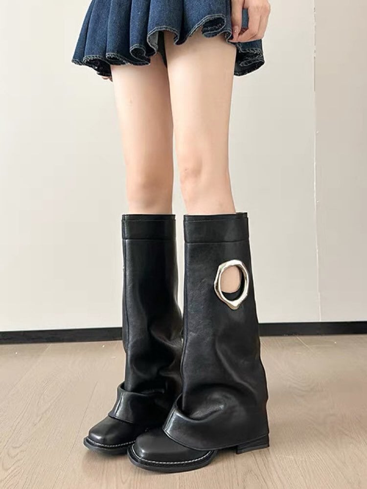 ワンポイントで差をつける♡ カットアウトフレアロングブーツ 大人可愛い お洒落 肌見せ カジュアル クール シルバー レザー調 脚長 細見え 大きいサイズ 韓国 CH11130