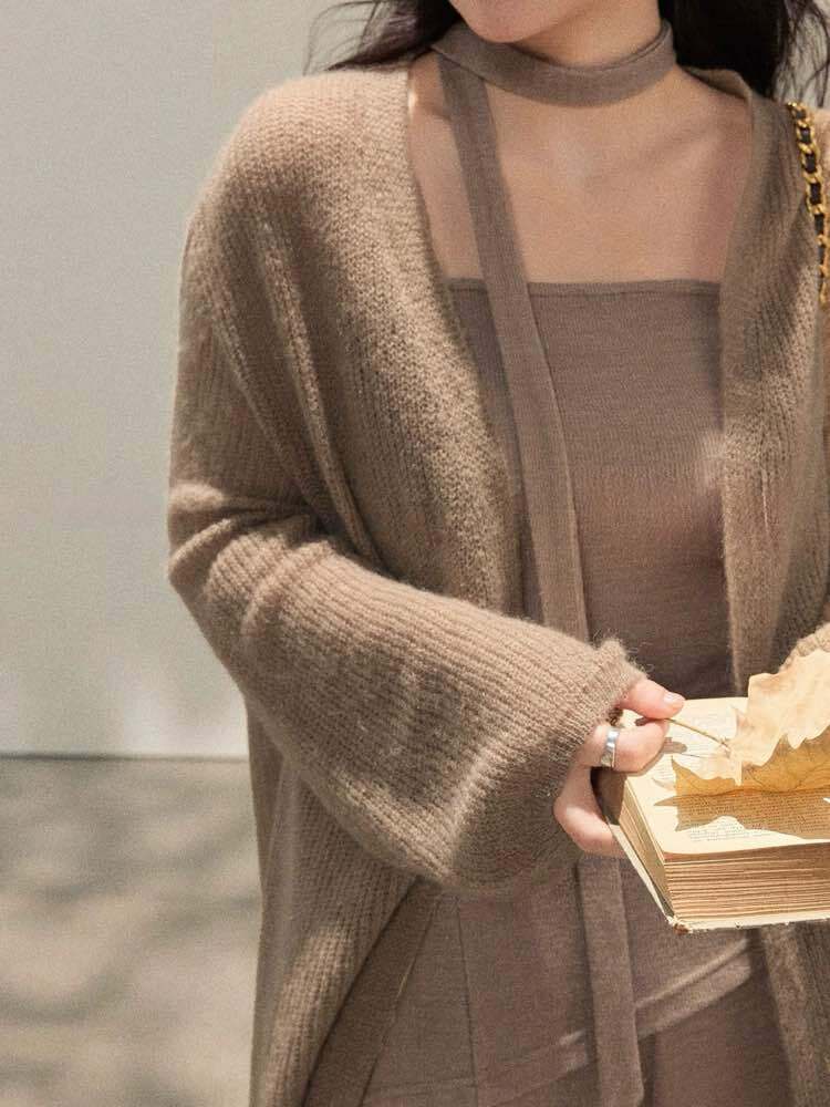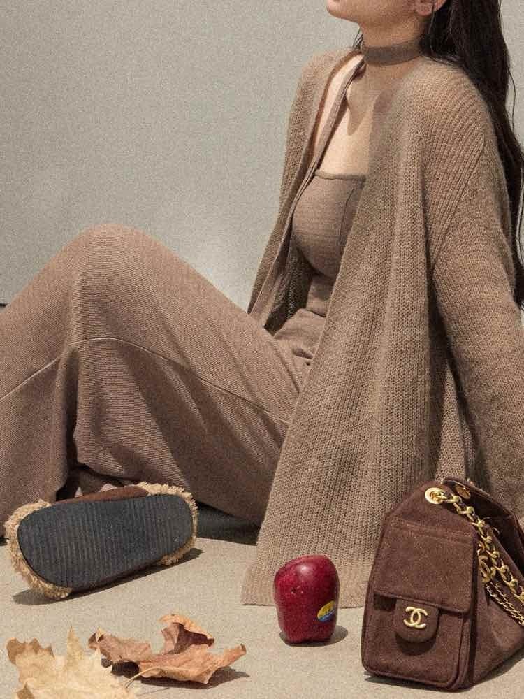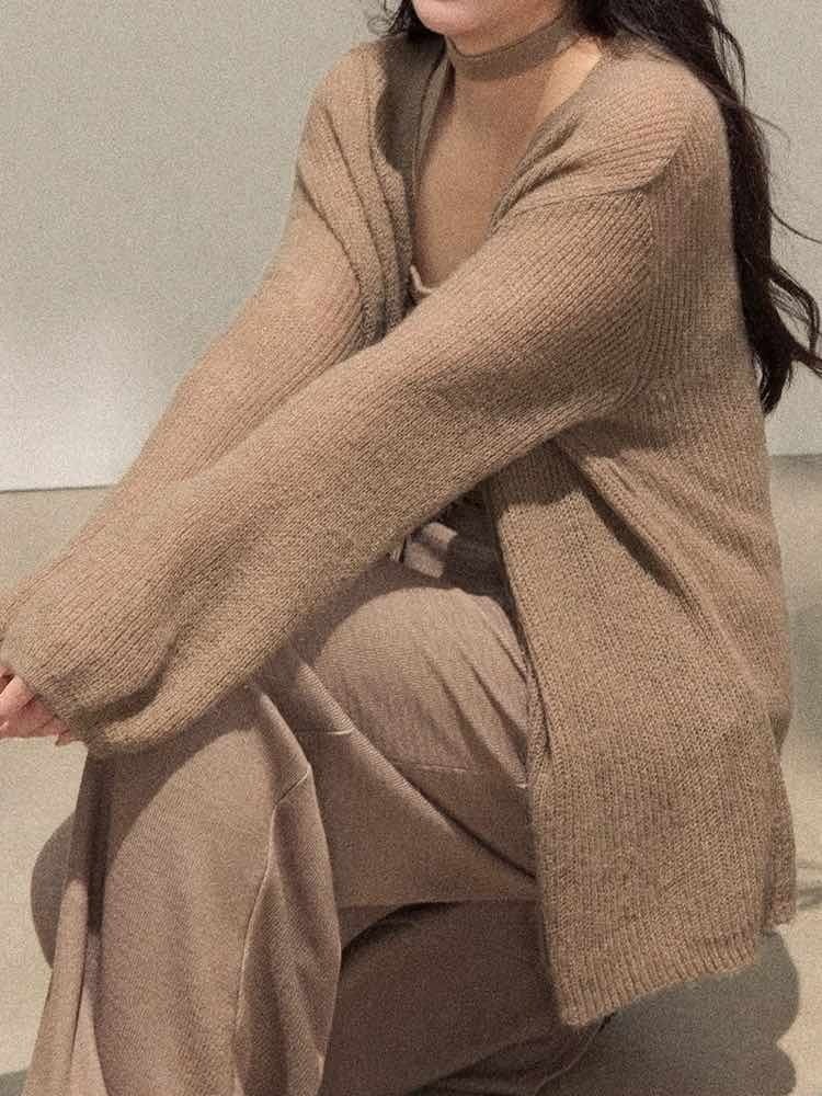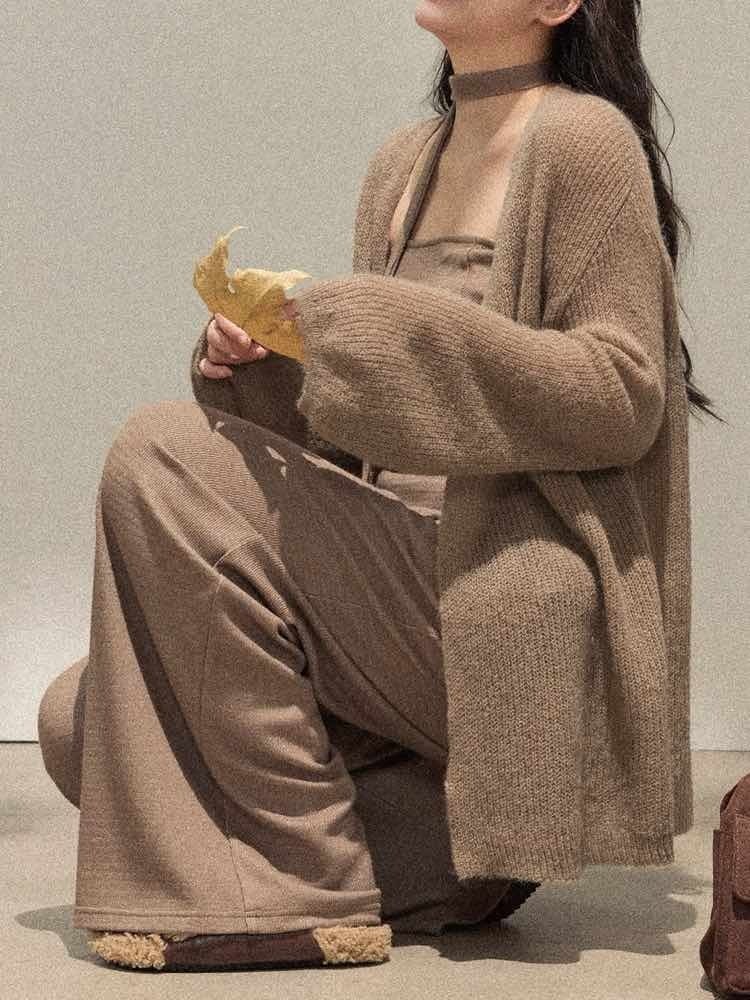 ゆったり可愛い着回し自在の3点セット ナチュラルカラーニットアップ 大人可愛い お洒落 ニット 肌見せ リラクシー きれいめ カジュアル ルームウェア お出かけ 体型カバー 大きいサイズ 韓国 CH11137