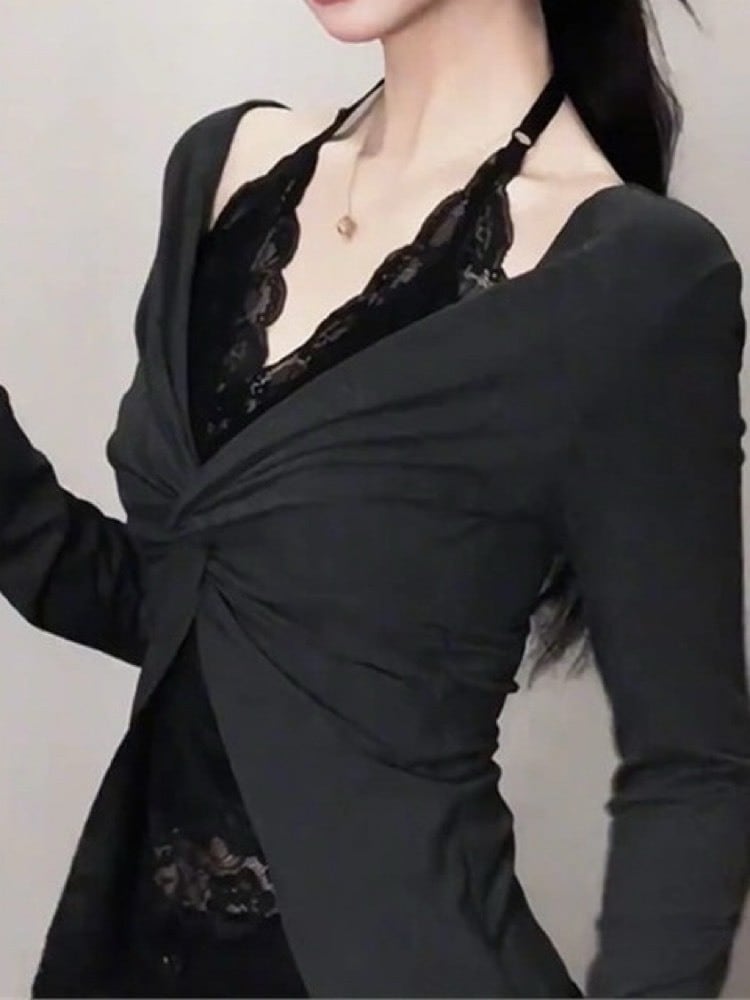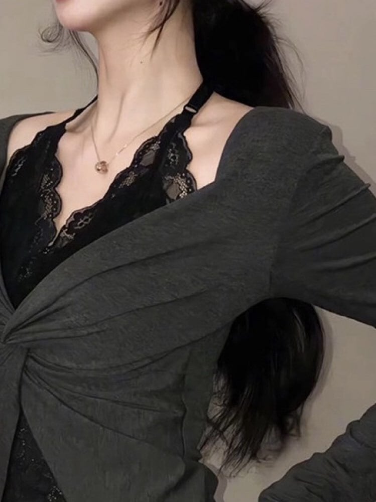 女性らしさをグッと引き立てる大人見えレースインナーレイヤードトップス♡