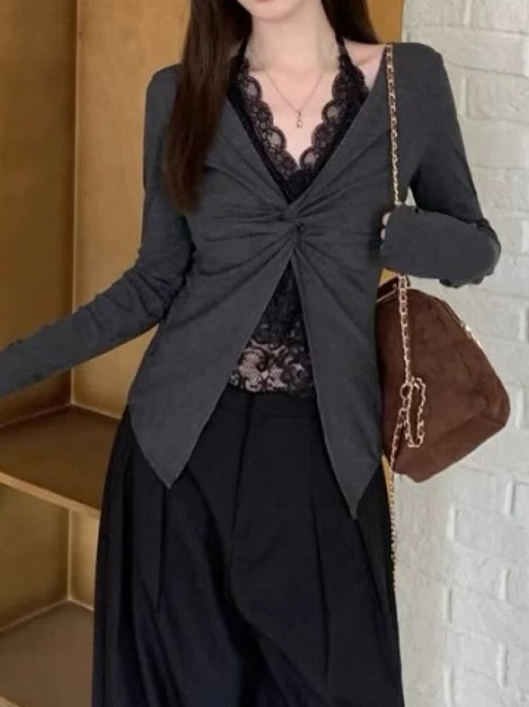 インナーに覗くレースがちょっぴりセクシーな雰囲気を演出しつつ、程よい肌見せで抜け感もプラス♪