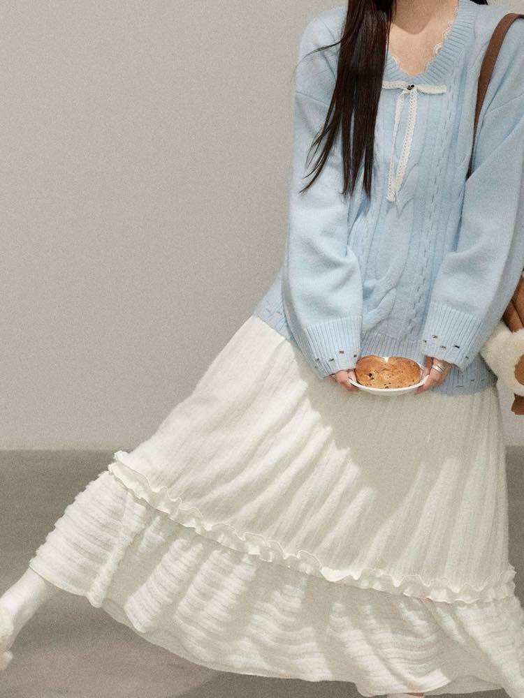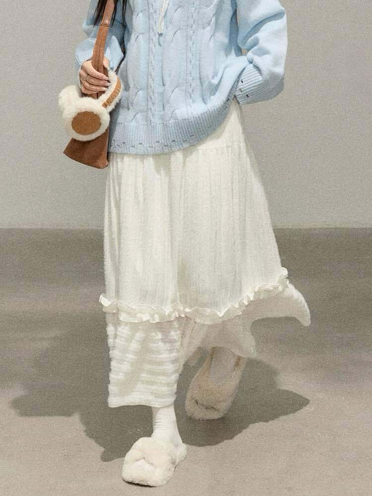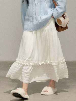 柔らかな素材感と動くたび揺れる裾が、コーディネートをさりげなく華やかにしてくれる一枚です♡