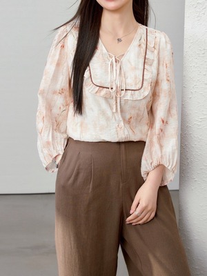 " 花柄フリル襟ブラウス"