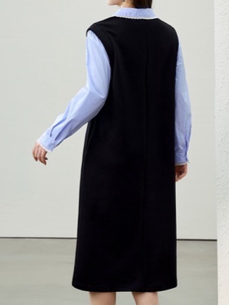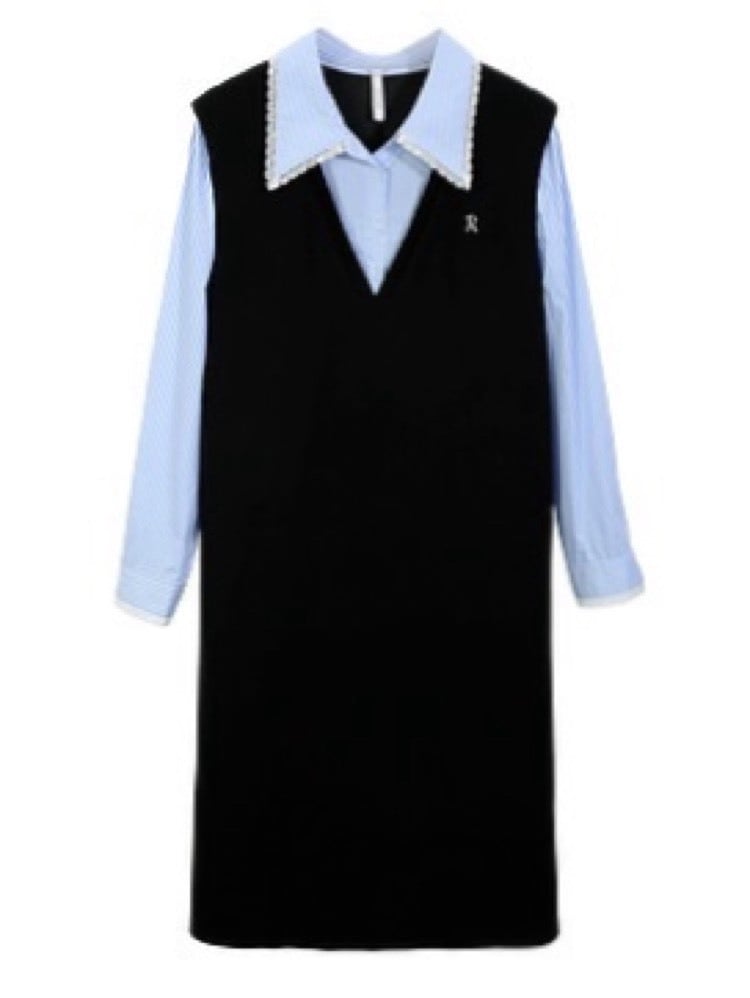 シャツを重ねたようなデザインが上品な印象のレイヤード風ワンピース。