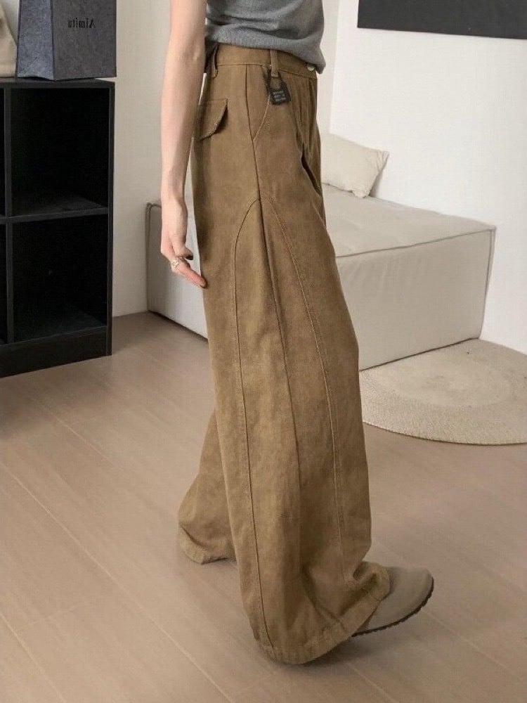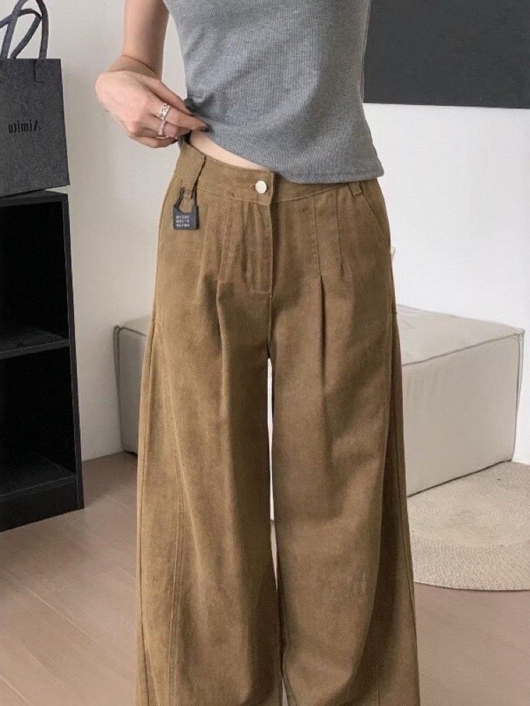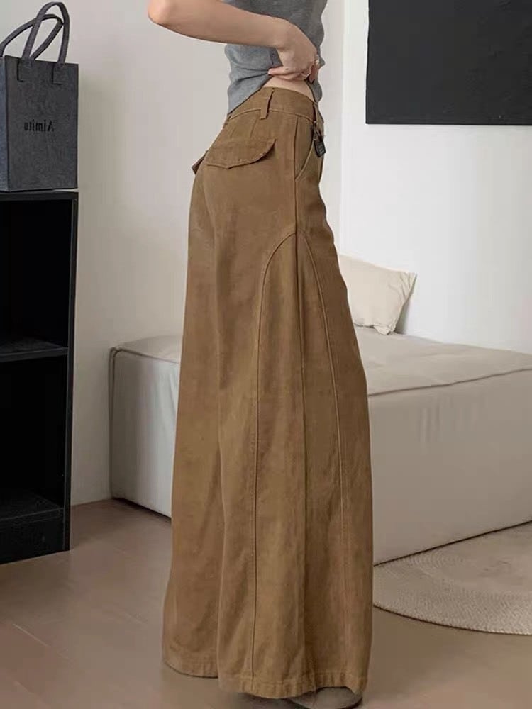 深みのあるブラウンカラーと、ふんわりとした起毛感が季節感を演出するワイドパンツ。