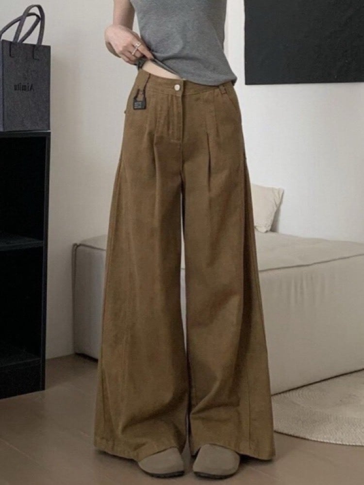 ゆるっと上品秋をまとう コーデュロイ風ワイドパンツ 大人可愛い おしゃれ カジュアル こなれ感 脚長 美脚 細見え 大きいサイズ 韓国 CH11178