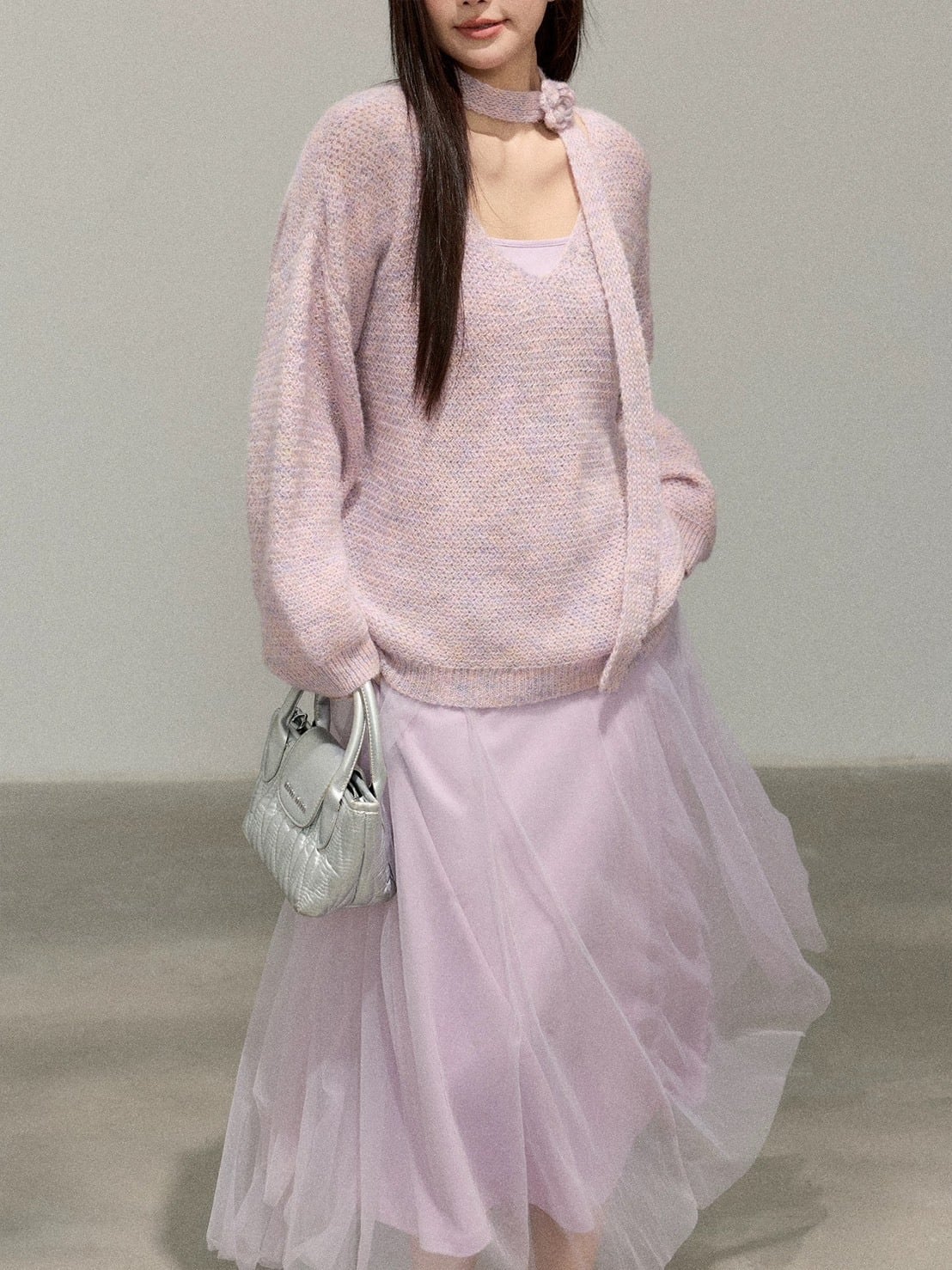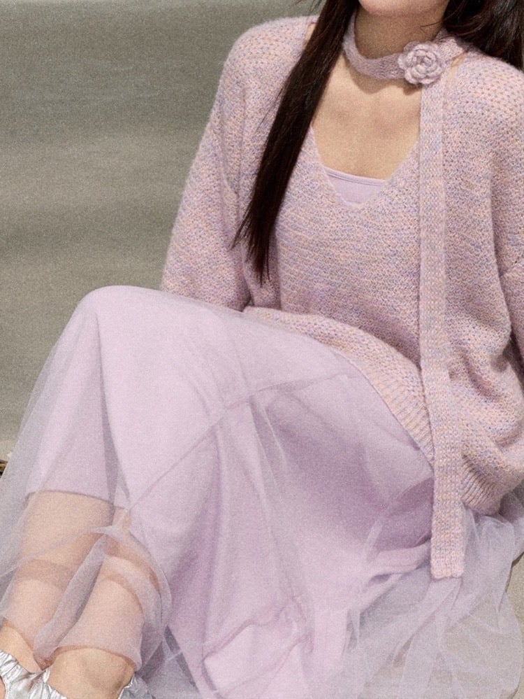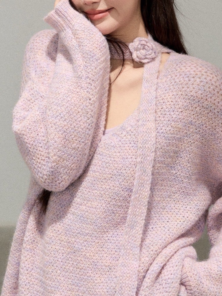"ふんわりニットカーディガン+フラワーチョーカー付き"