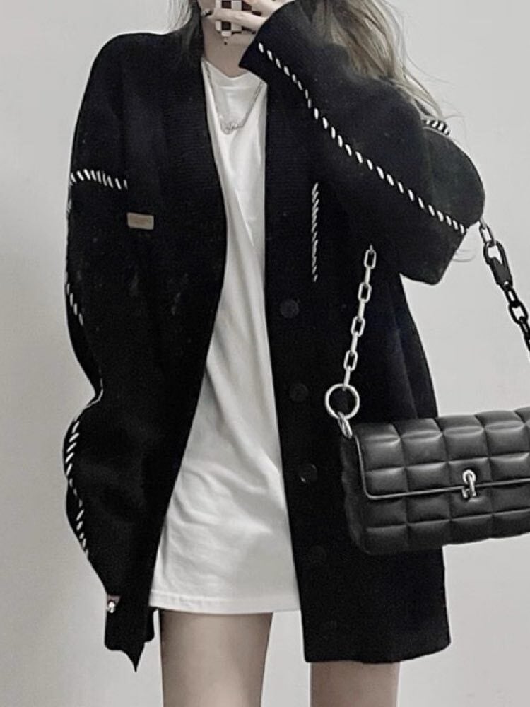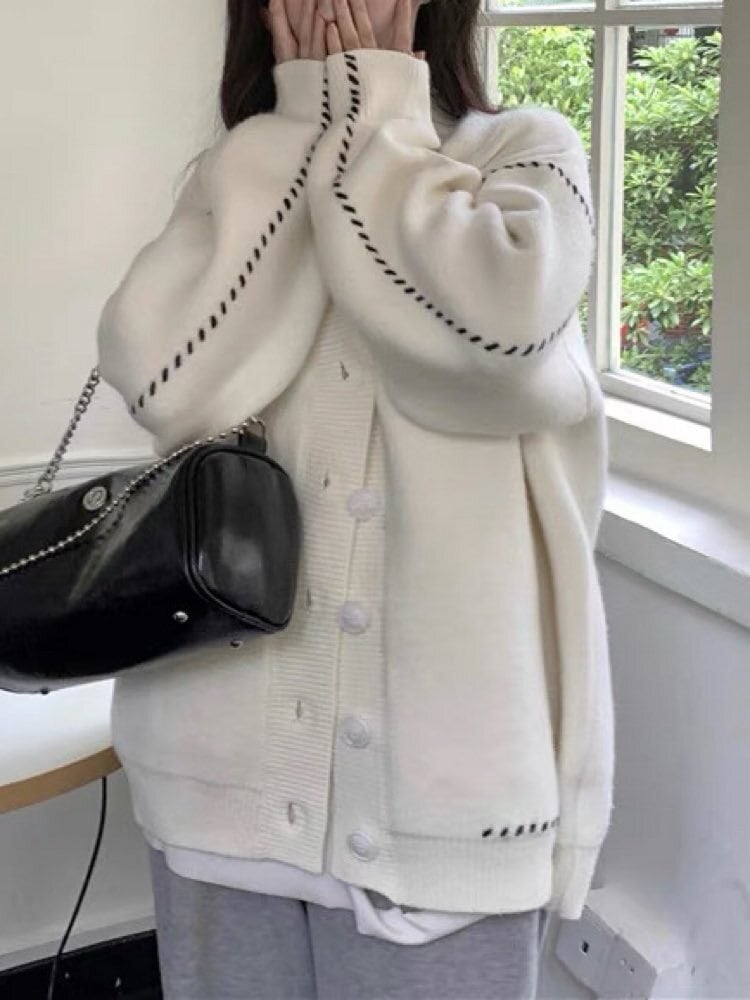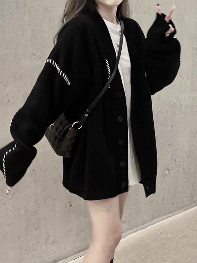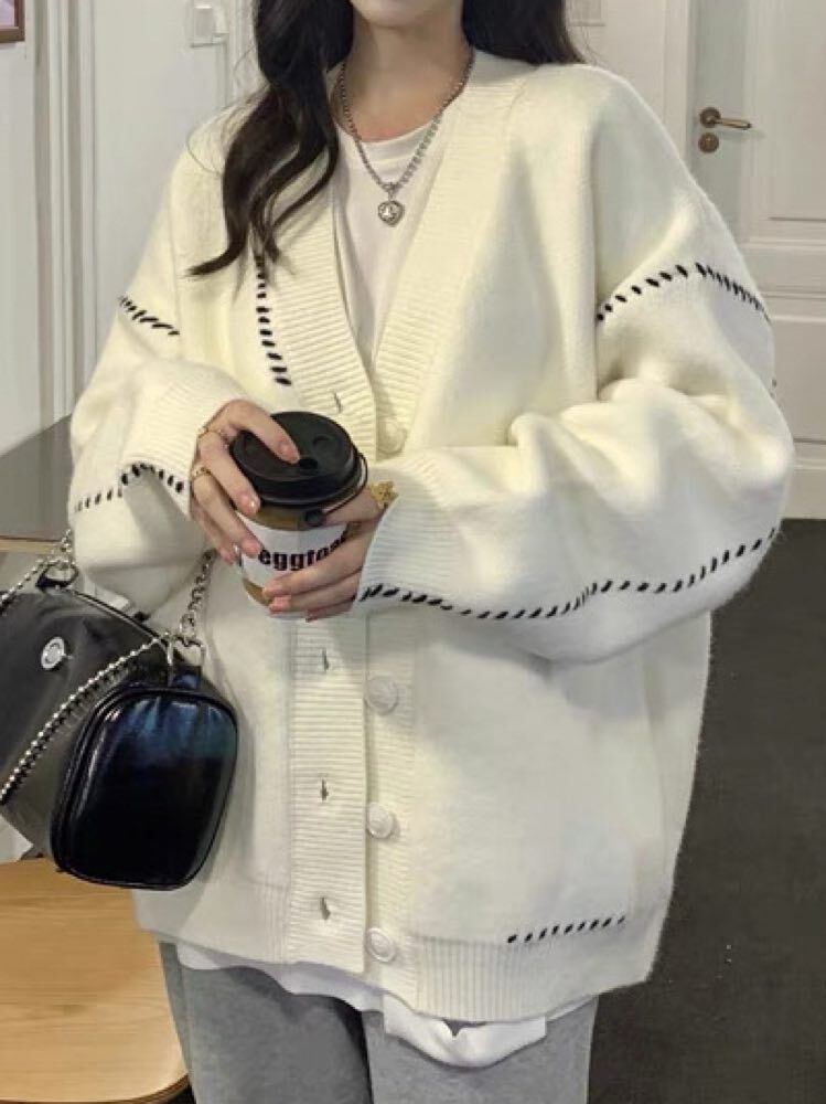ラフなのにシャレ見え ステッチオーバーサイズカーディガン おしゃれ 大人 かわいい 着映え こなれ感 カジュアル リラクシー 体型カバー 大きいサイズ 韓国 CH11190
