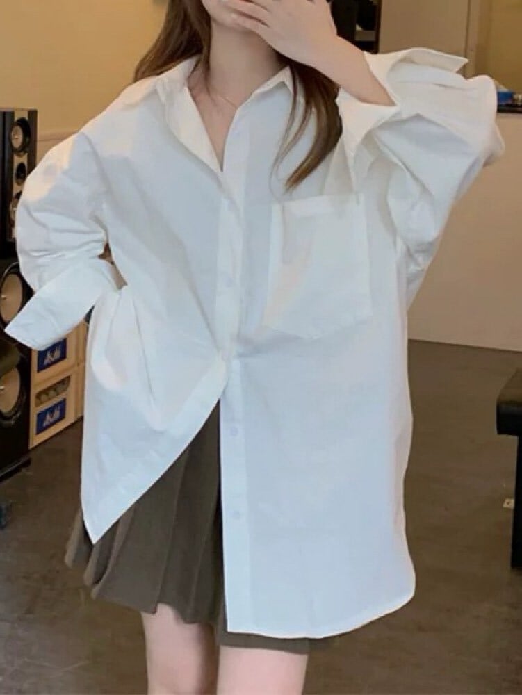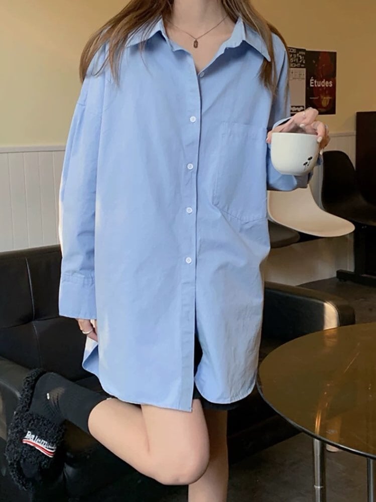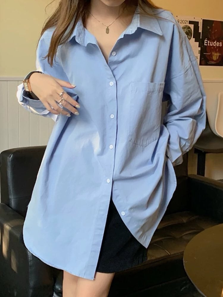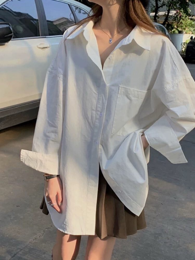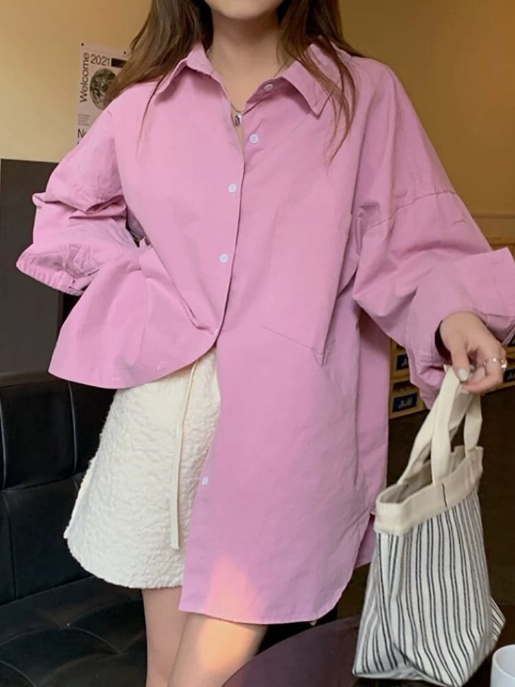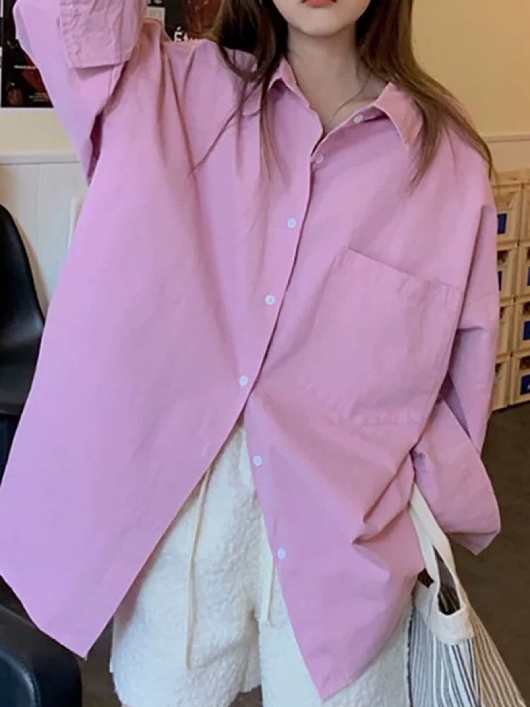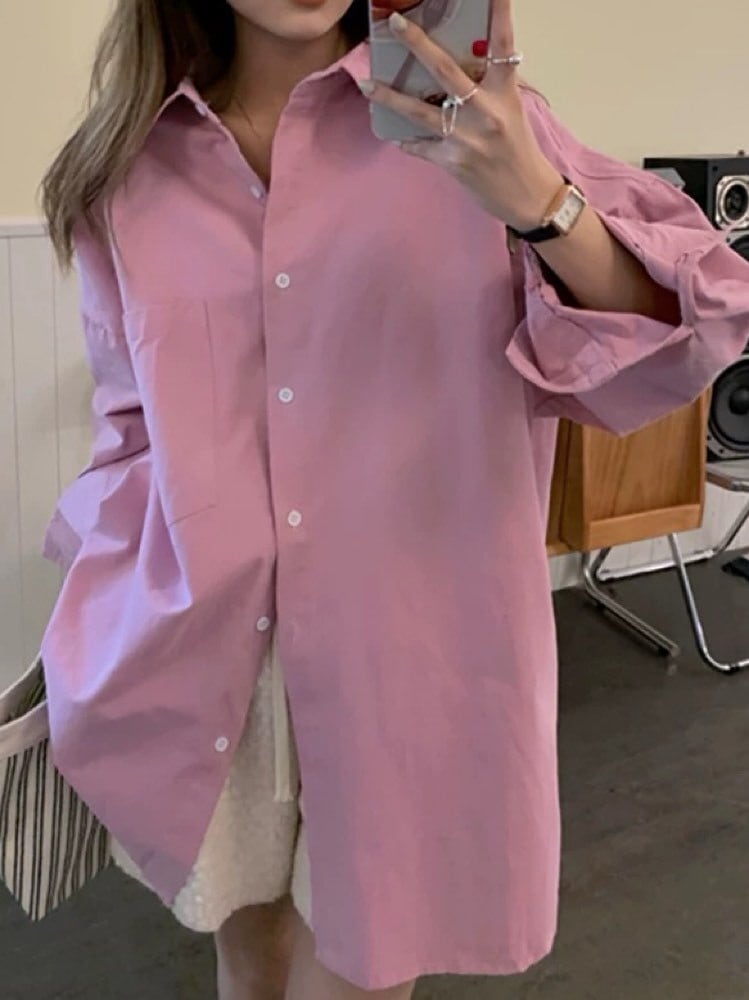 抜け感×差し色でつくる大人スタイル オーバーサイズカラーシャツ 長袖 おしゃれ 大人 可愛い ハンサム カジュアル きれいめ こなれ感 リラクシー 差し色 レイヤード 羽織り 体型カバー 大きいサイズ 韓国 CH11192
