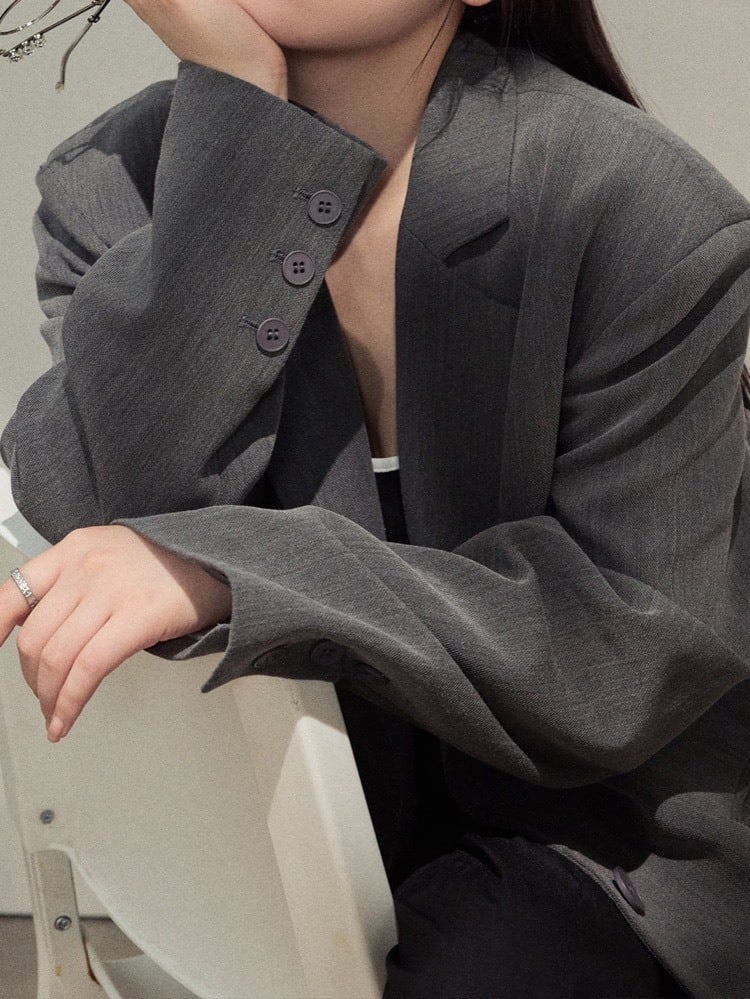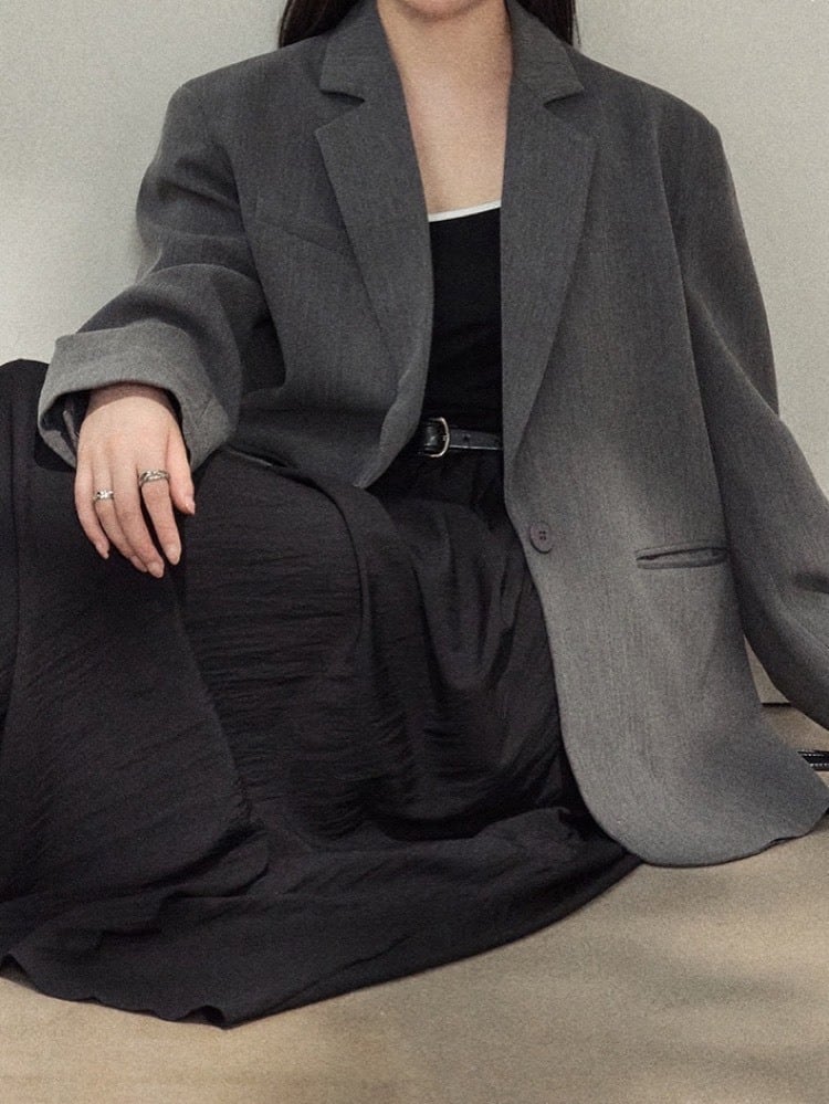 シンプルなのにどこかモード。絶妙なシルエットで大人っぽく仕上がるグレージャケット。