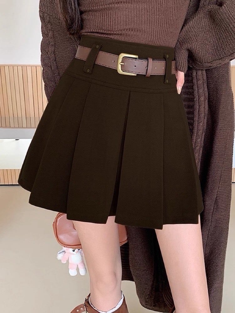 “きちんと見え”と“動きやすさ”のいいとこ取り ベルト付きプリーツスカパン ミニスカート風 ショートパンツ 大人可愛い おしゃれ 美脚 細見え 大きいサイズ 韓国 CH11249