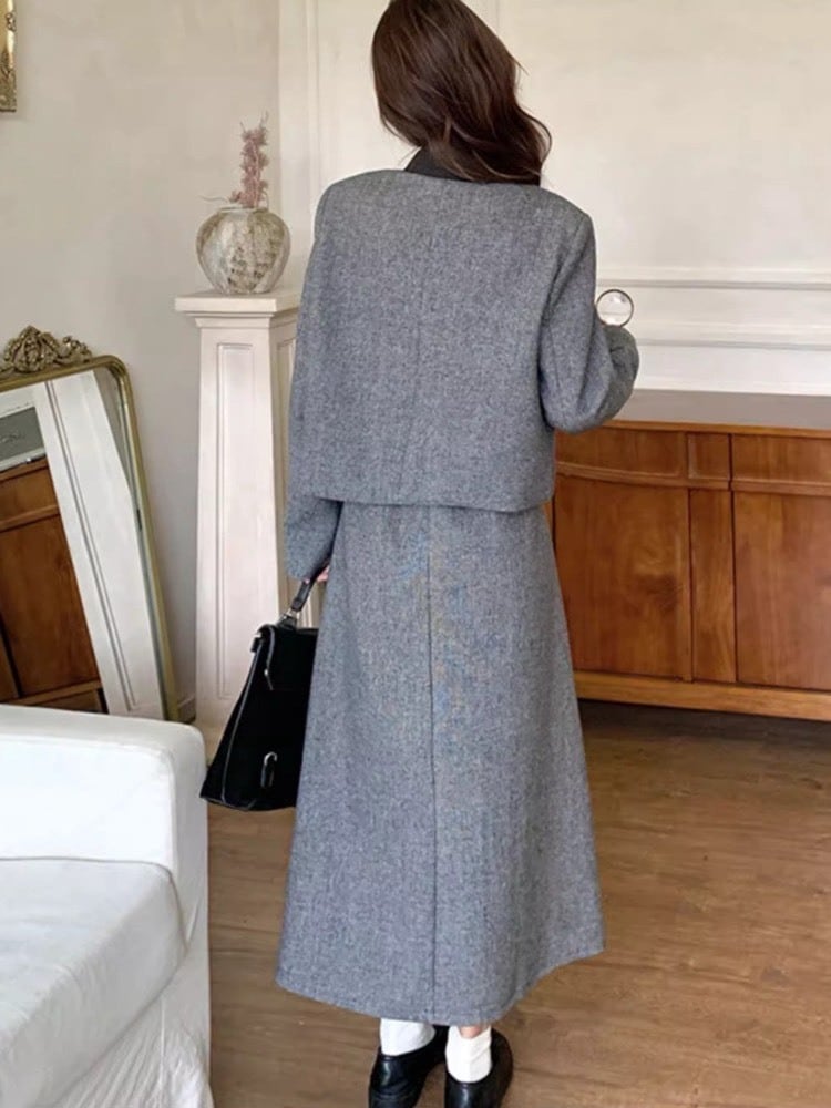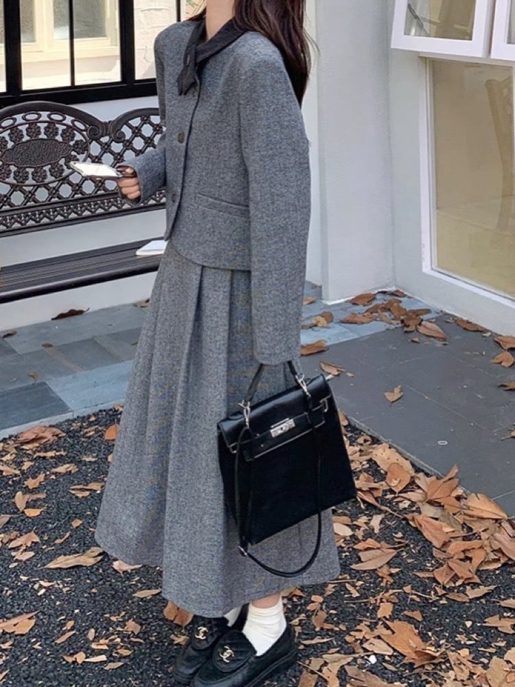 一瞬で“きちんと見え”叶う グレーツイード調セットアップ フォーマル お呼ばれ オフィス 大人可愛い お洒落 きちんと 体型カバー 大きいサイズ 韓国 CH11253