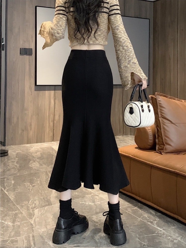 揺れるヘムラインで美しいシルエット マーメイドスカート 大人可愛い おしゃれ 上品 脚長 着回し 体型カバー 大きいサイズ 韓国 CH11270