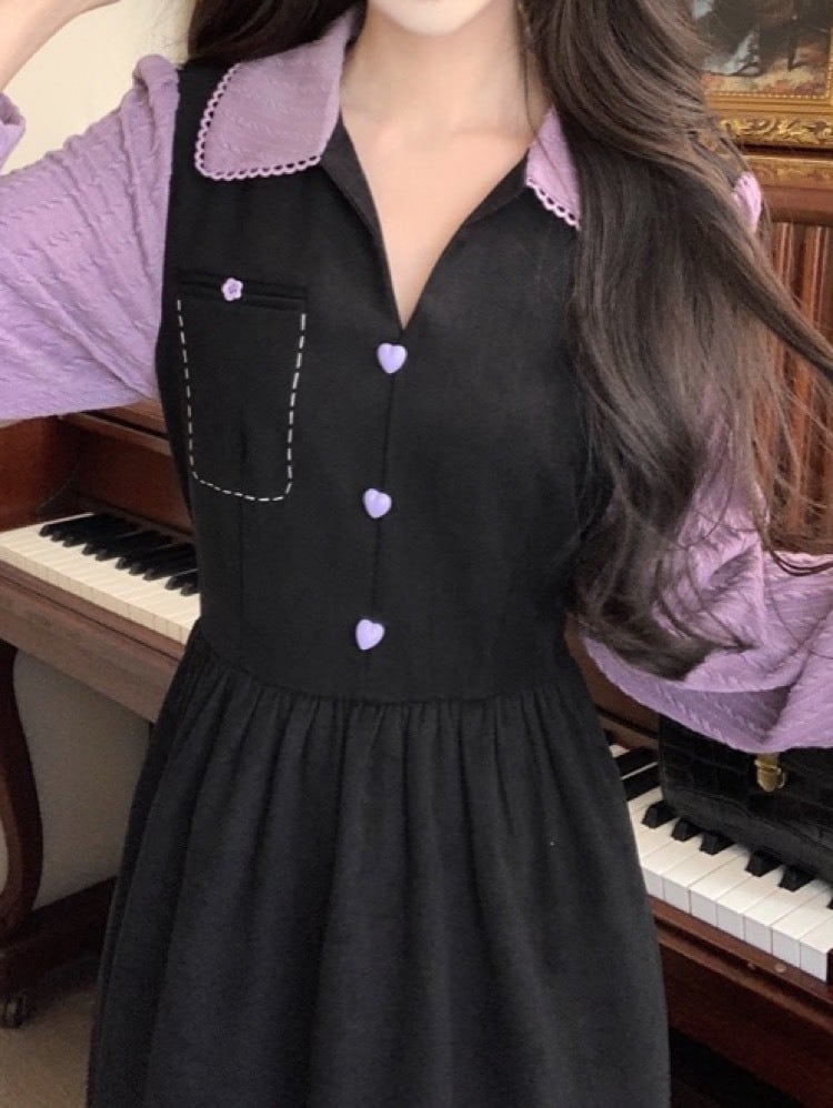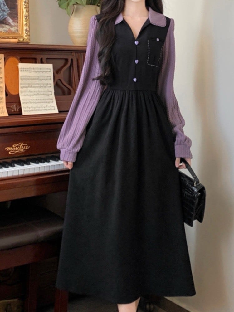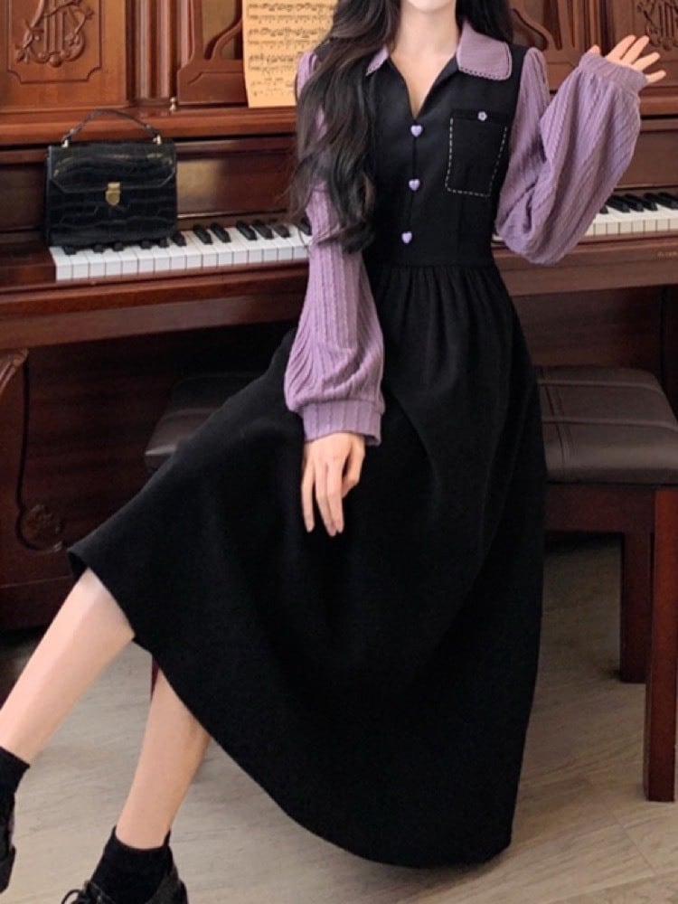 ブラック×ラベンダーの絶妙な配色が目を引く韓国っぽワンピースです。