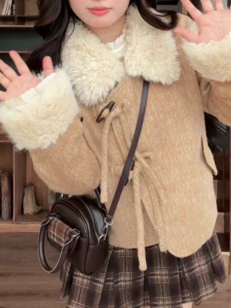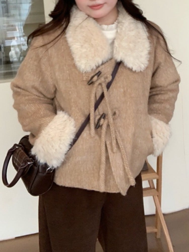 甘すぎない可愛さ ふわもこ配色アウターボアコート ショートコート お洒落 大人可愛い キュート 淡色 もこもこ ミドル丈 体型カバー 大きいサイズ 韓国 CH11272