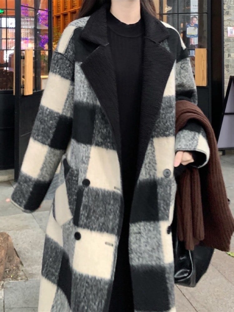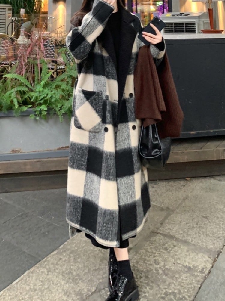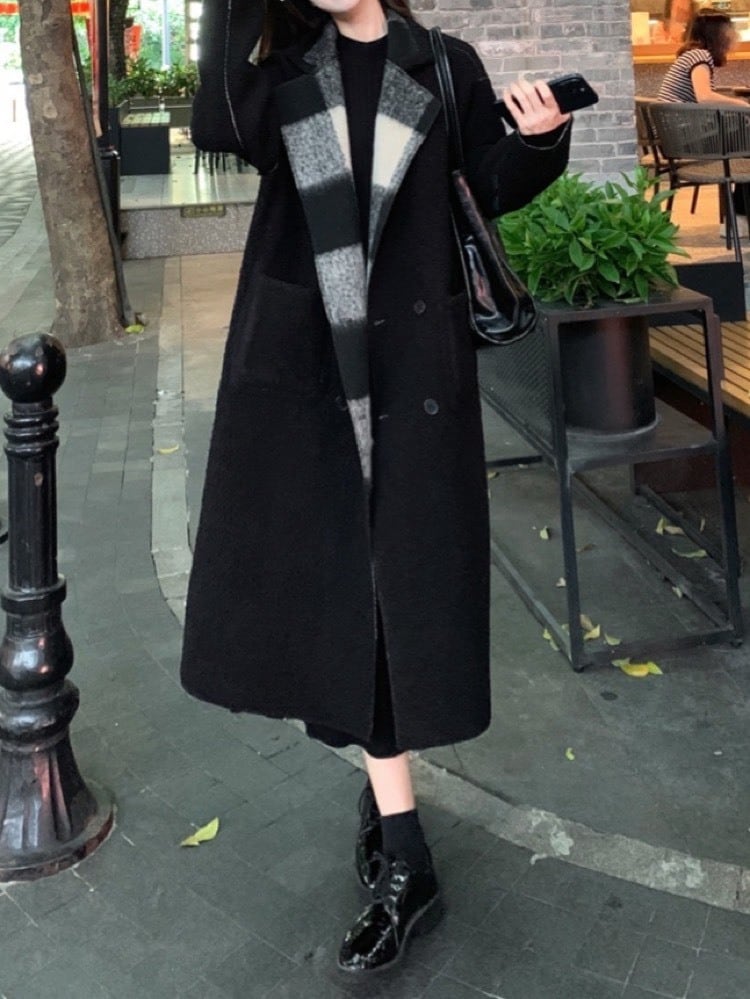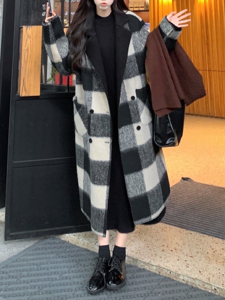 冬のおしゃれを二倍楽しむ リバーシブルチェックロングコート お洒落 大人可愛い デート 通勤 きれいめ 体型カバー 大きいサイズ 韓国 CH11278