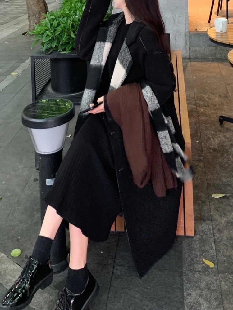 柔らかいウールタッチ素材で暖かく、縦ラインを強調するシルエットが自然に体型をすっきり見せてくれます。