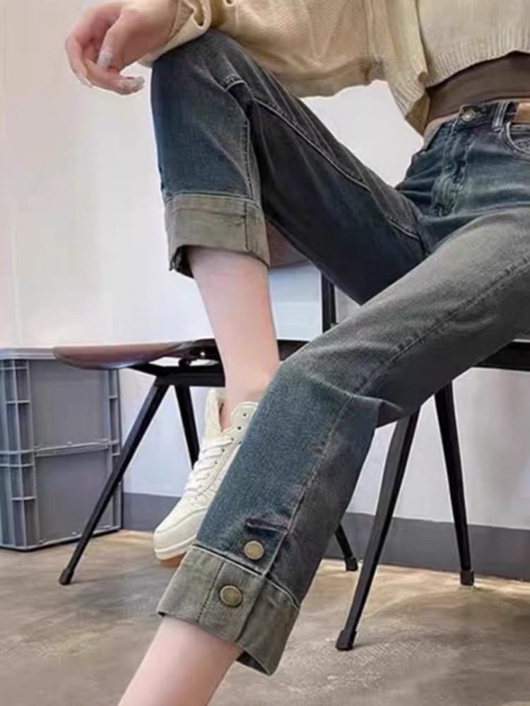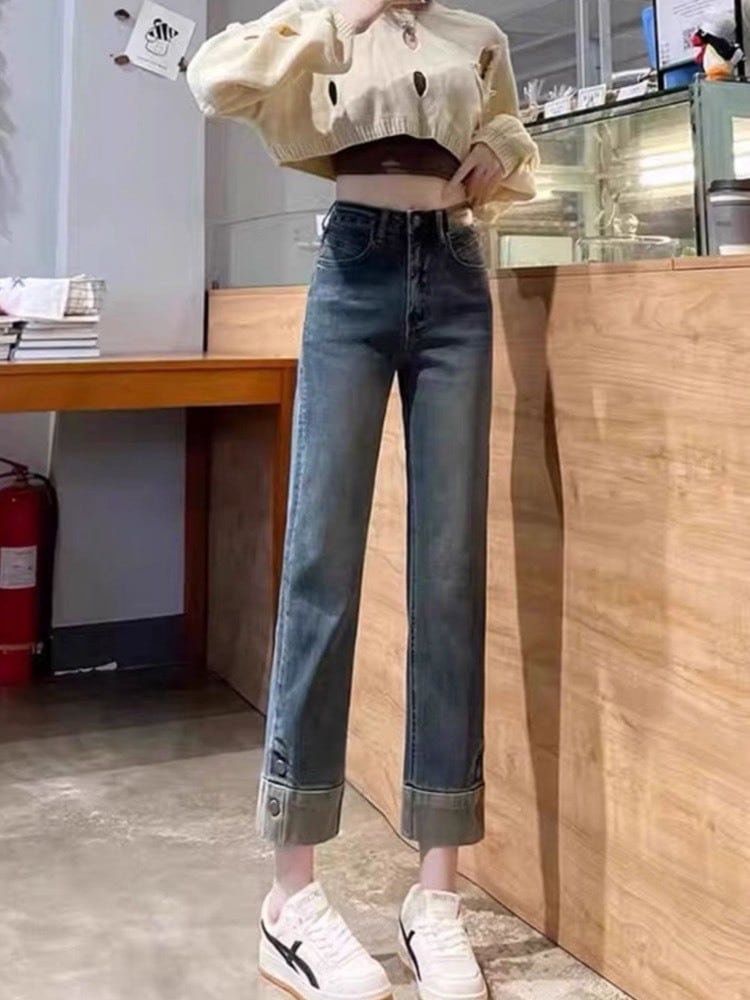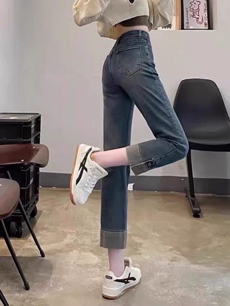 カジュアルなのに上品 ロールアップストレートデニム 着回し ワンポイント こなれ感 デイリー 脚長 細見え 大きいサイズ 韓国 CH11281