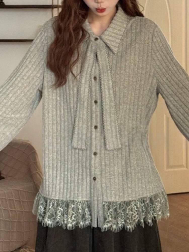 "リボンタイリブニットトップス "