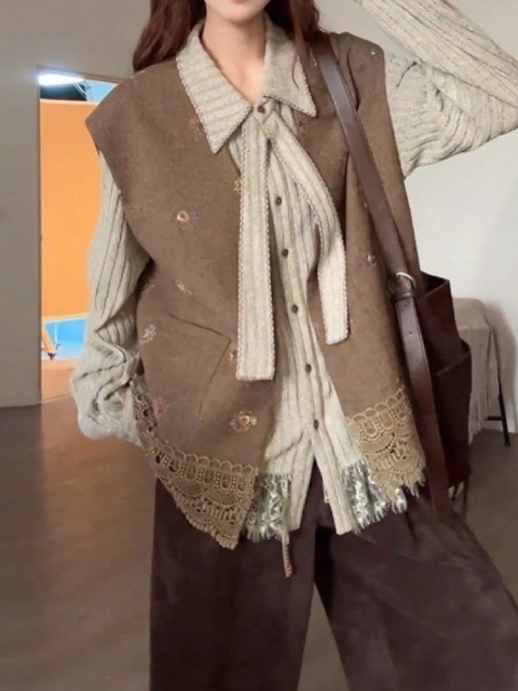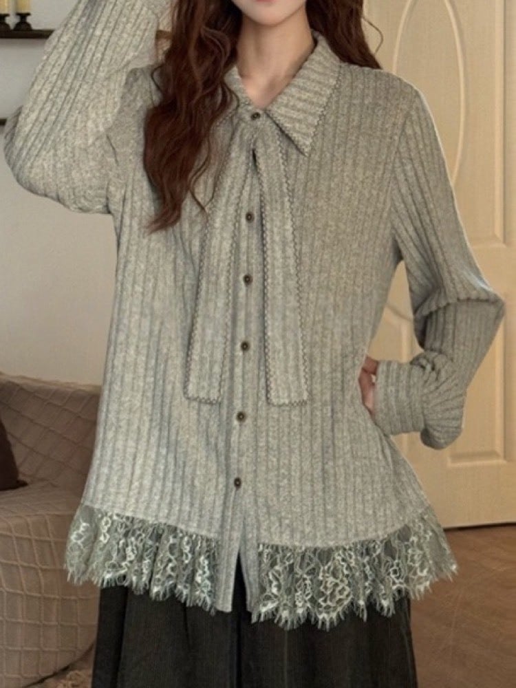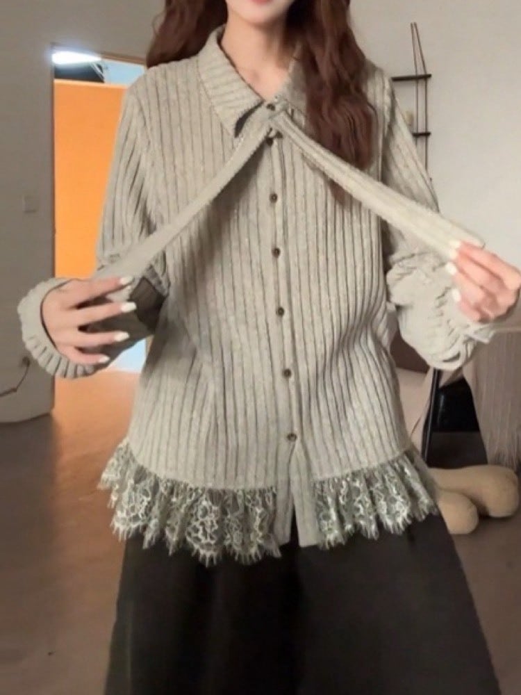 レースを贅沢にあしらった裾が、歩くたびに柔らかく揺れるフェミニンなリブニット。