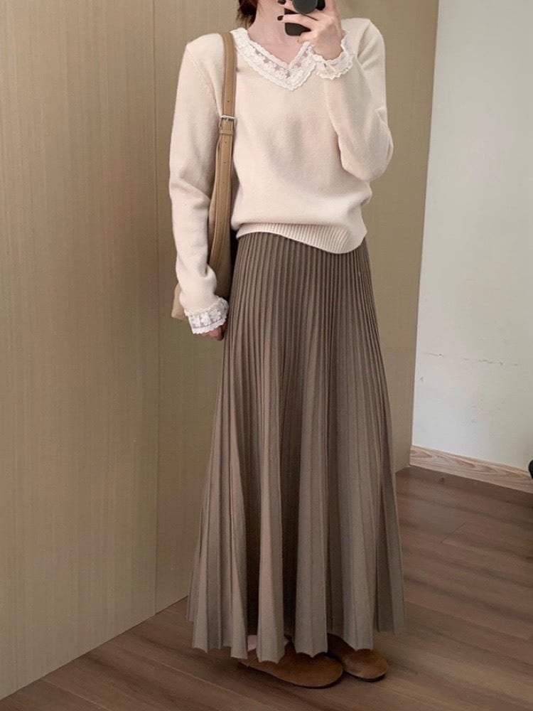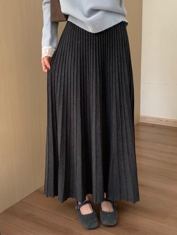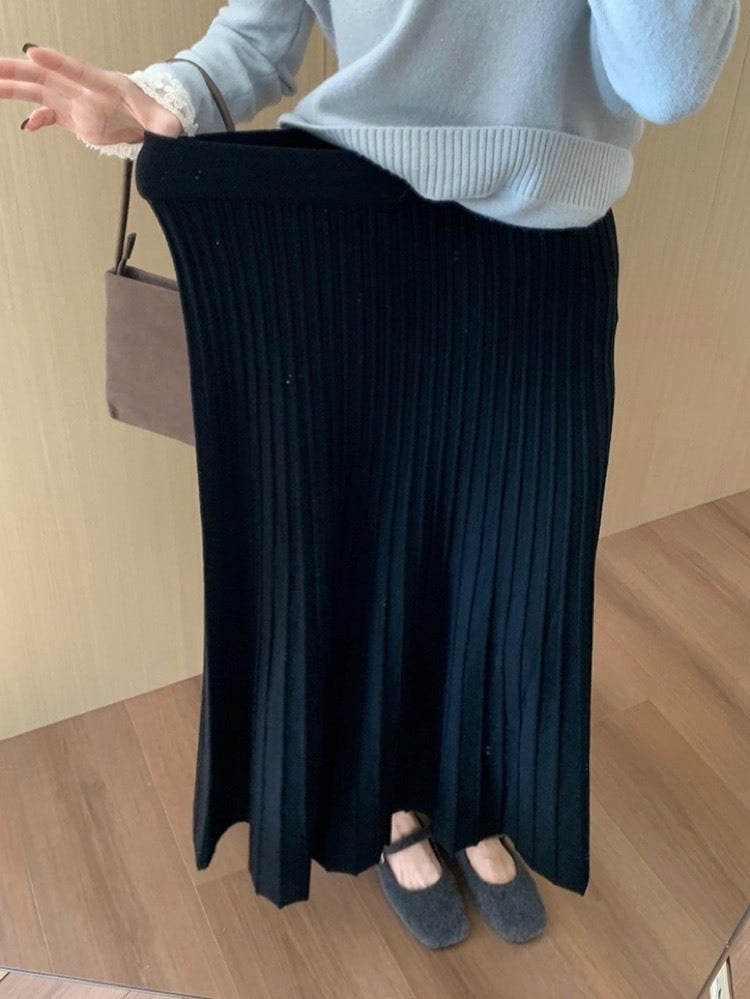 華奢見えも着痩せも叶う ストレッチプリーツロングスカート ニットスカート ウエストゴム 大人可愛い おしゃれ 美脚 細見え 大きいサイズ 韓国 CH11283