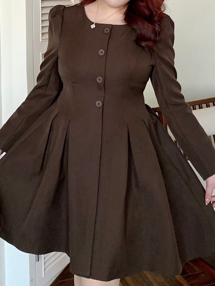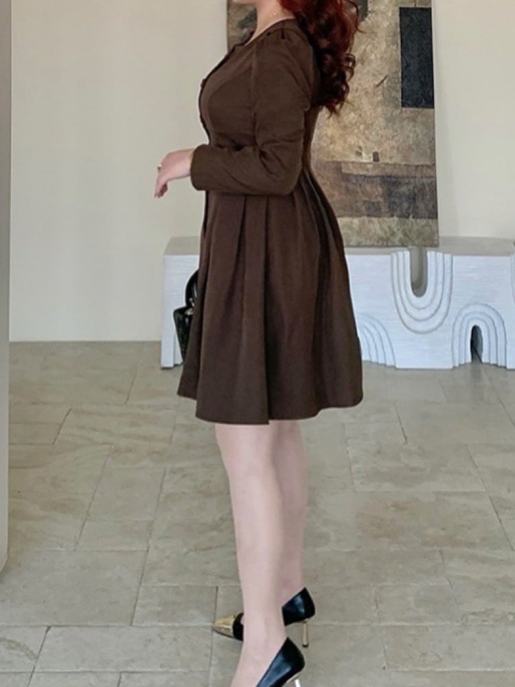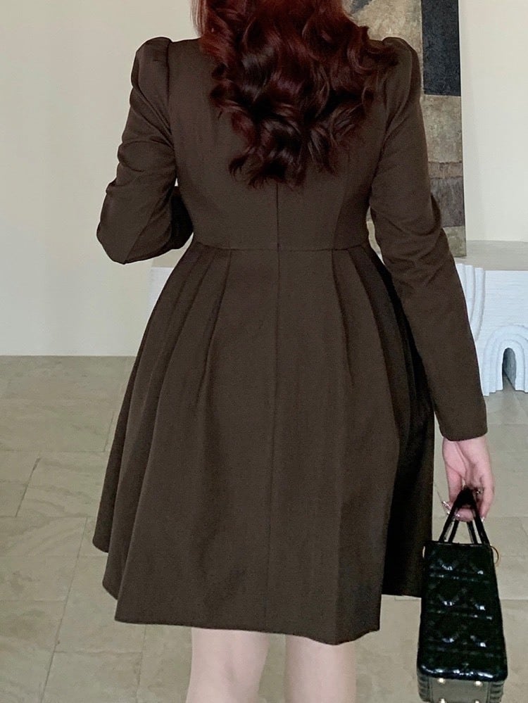 落ち着いた深みブラウンが大人の魅力を引き立てるクラシカルワンピース。