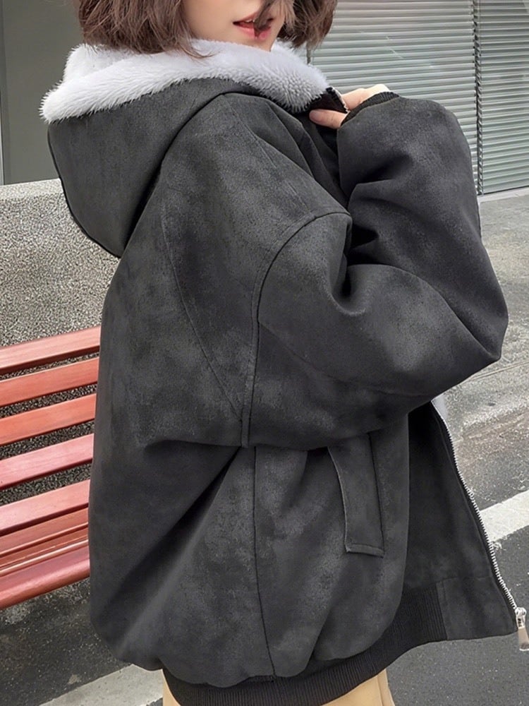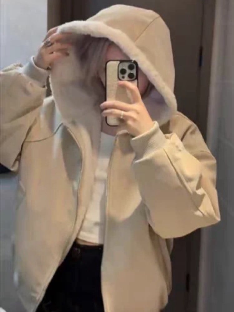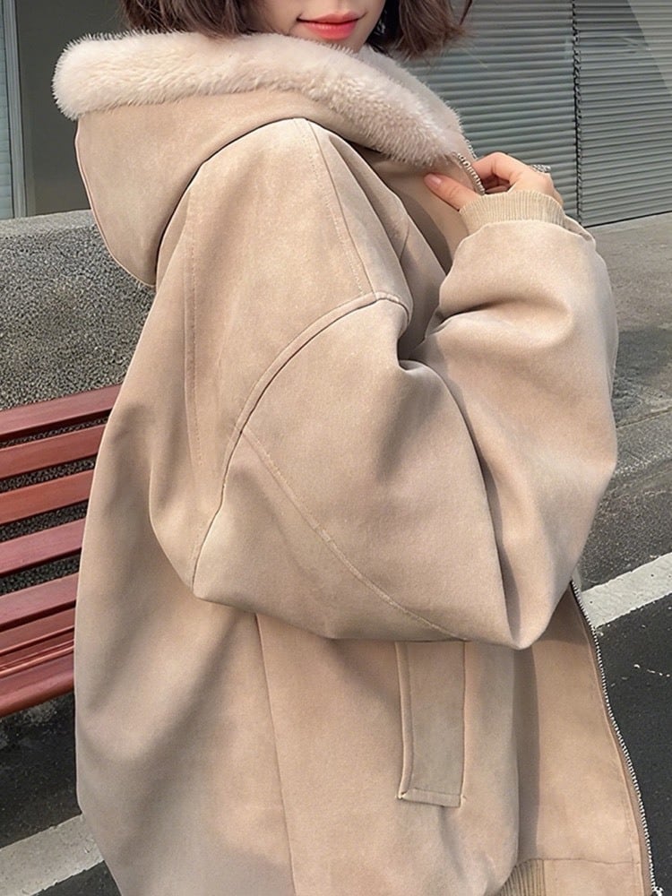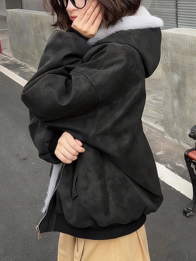 羽織るだけで“こなれ感” ふわふわ裏ボアフーディーもこもこ ボア おしゃれ ゆったり ナチュラル カジュアル 体型カバー 大きいサイズ 韓国 CH11280