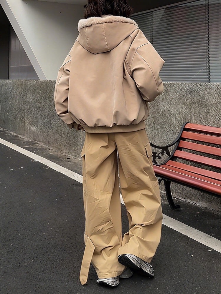 ゆったりとしたオーバーサイズシルエットと、ふわふわの裏ボアが大人可愛い冬アウター。