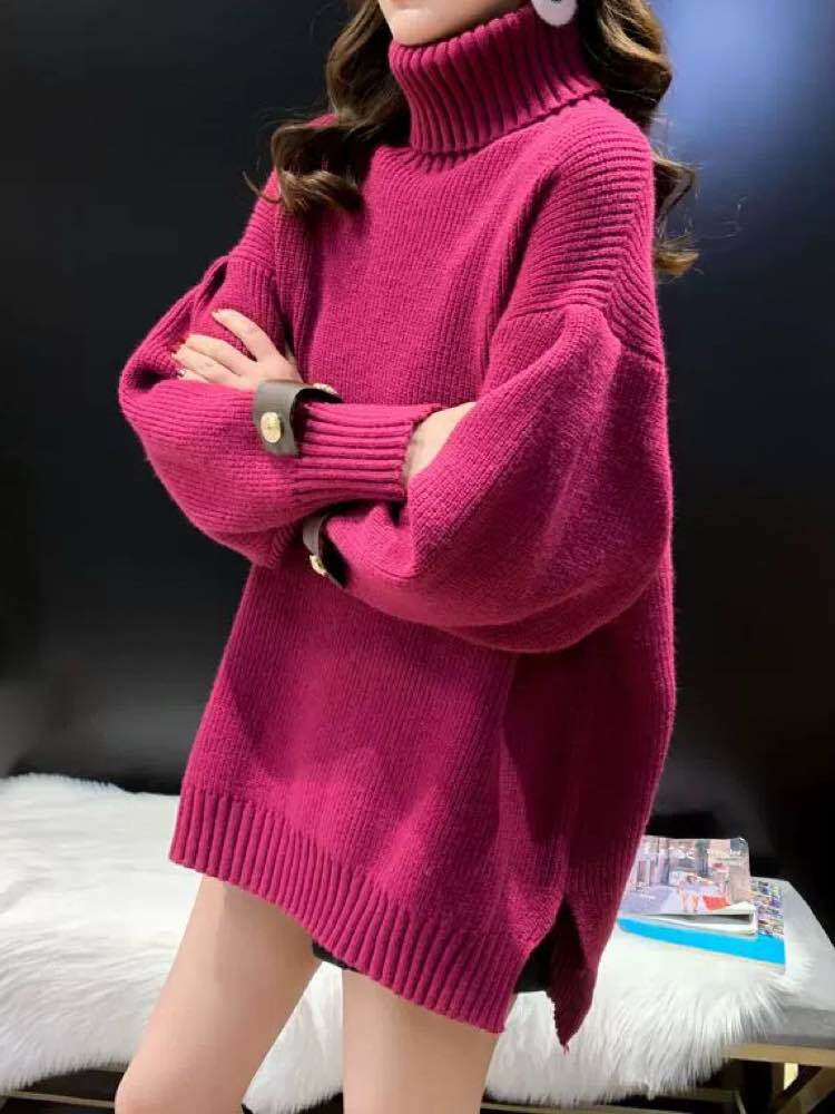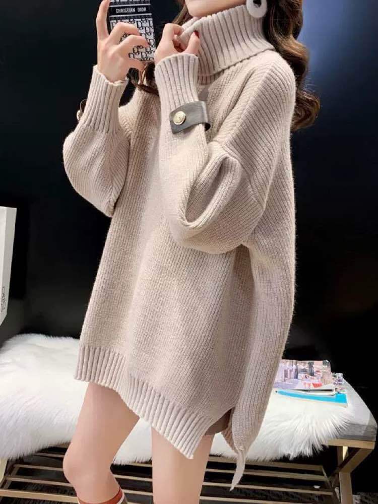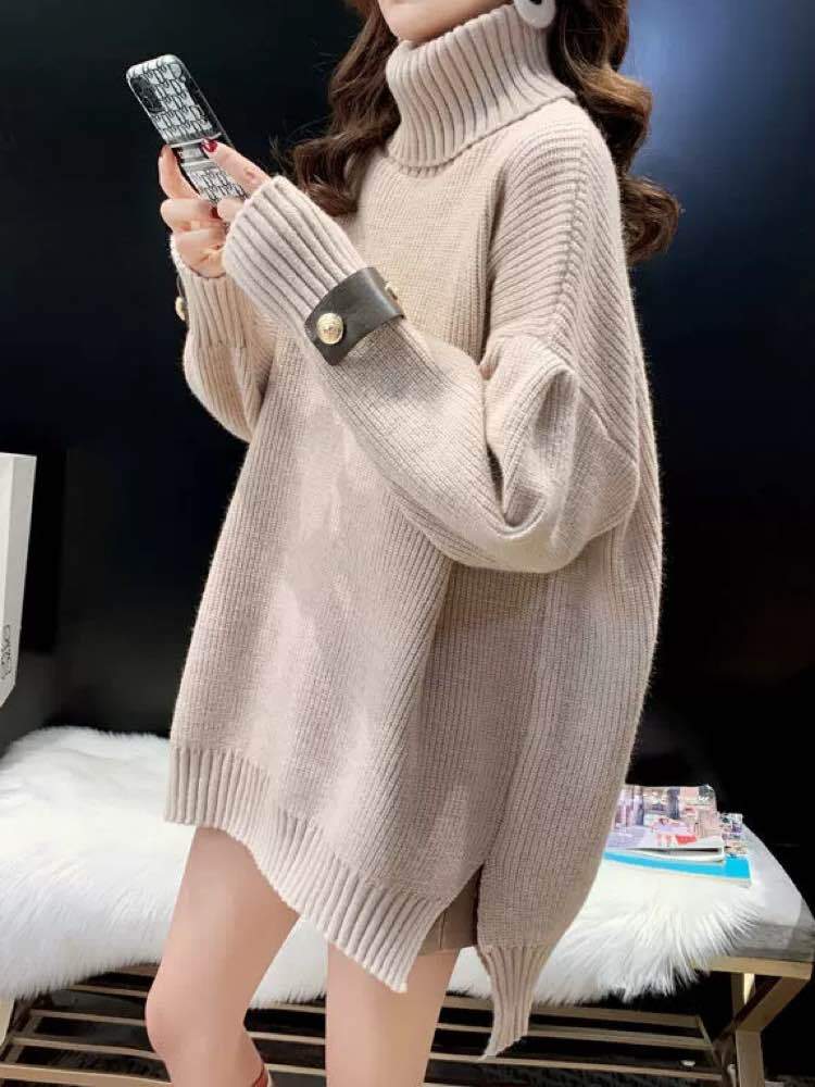 冬映え間違いなし! ベルトデザインタートルニット おしゃれ 大人可愛い 着映え 暖か ゴールド 上品 おでかけ デイリー スリット 細見え 体型カバー大きいサイズ 韓国 CH11304