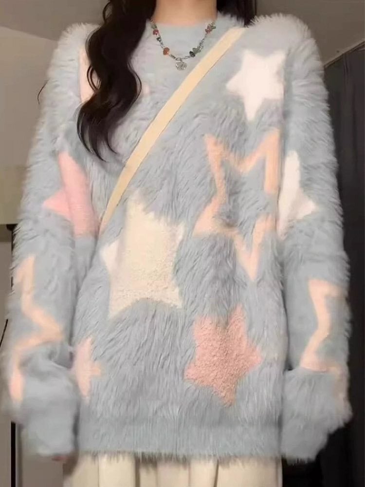 星空みたいなゆめかわデザイン♡ 星柄パステルシャギーニット 星柄 かわいい シャーベットカラー おしゃれ もこもこ 着映え リラクシー デイリー おでかけ 暖か 体型カバー 大きいサイズ 韓国 CH11305