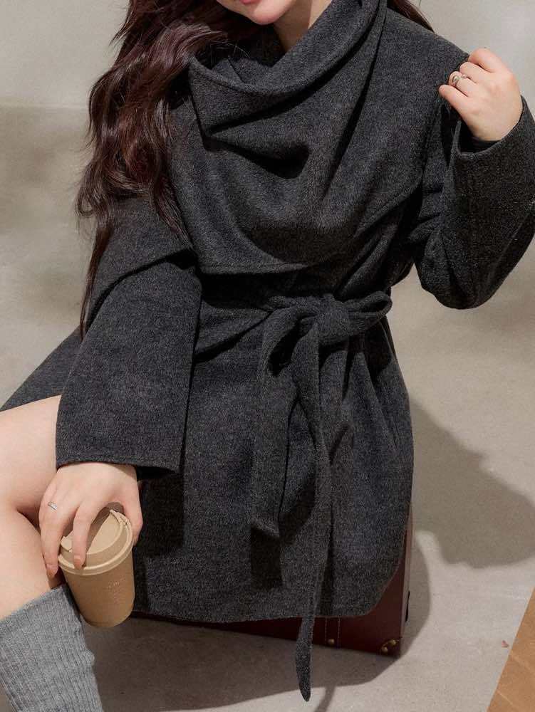ONもOFFも活躍間違いナシ! 丈が選べる ケープデザインウエストベルトコート 大人 おしゃれ 上品 シンプル ロング ミニ くびれ 細見え 脚長 オフィス おでかけ 体型カバー 大きいサイズ 韓国 CH11306