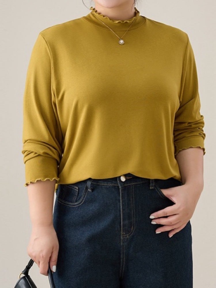 着心地の良さをそのまま“品の良さ”に変える リブモックネックカットソー 長袖 差し色 大人可愛い ガーリー フェミニン かわいい 体型カバー 大きいサイズ 韓国 CH11298