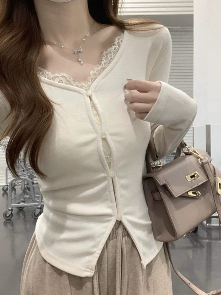 ほんのり甘アクセントで視線クギヅケ♡ カーディガン風レースインナートップス おしゃれ 大人可愛い レース セクシー カジュアル きれいめ シンプル 着映え レイヤード 細見え 大きいサイズ 韓国 CH11294