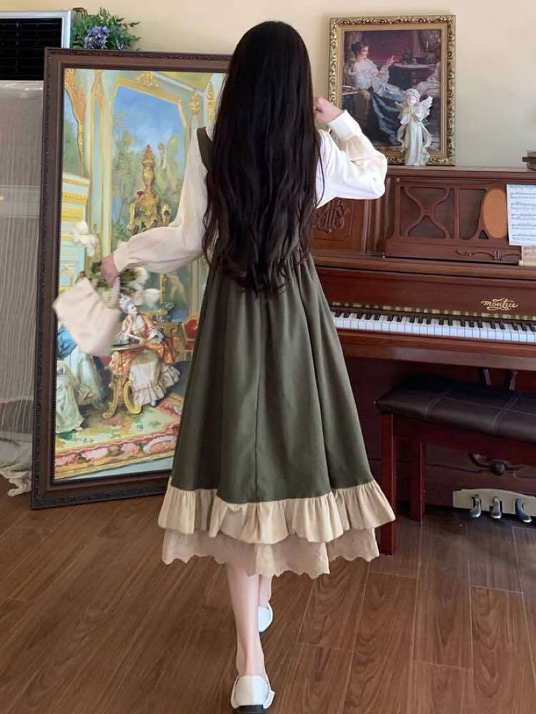 裾のフリル切り替えも目を惹くポイントで、一枚纏うだけでクラシカルワンピースコーデが即完成♡