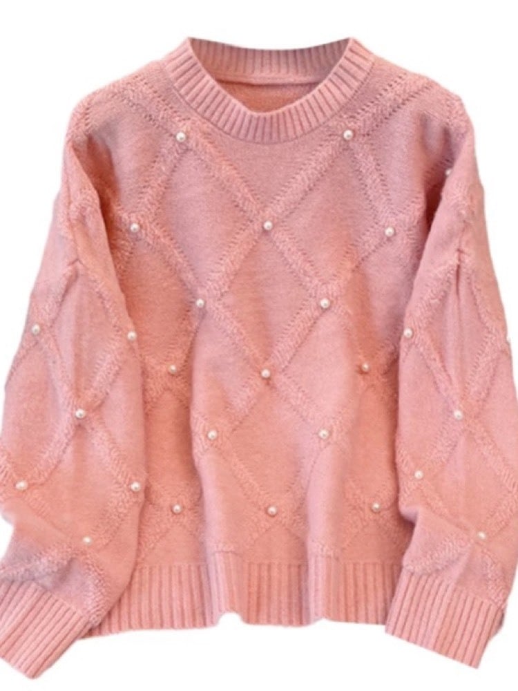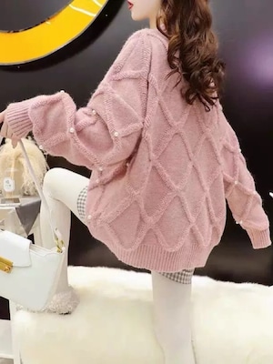 さりげないパールで毎日をちょっと特別に パール付きデザインニット 長袖 差し色 大人可愛い ガーリー かわいい 体型カバー 大きいサイズ 韓国 CH11352
