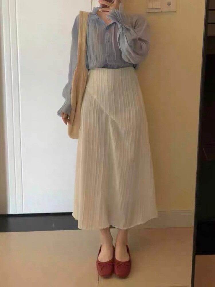 きちんと感もやわらかさも スタンドカラーとろみブラウス ボリューム袖 大人可愛い 着回し きれいめ 透け感 体型カバー 大きいサイズ 韓国 CH11354
