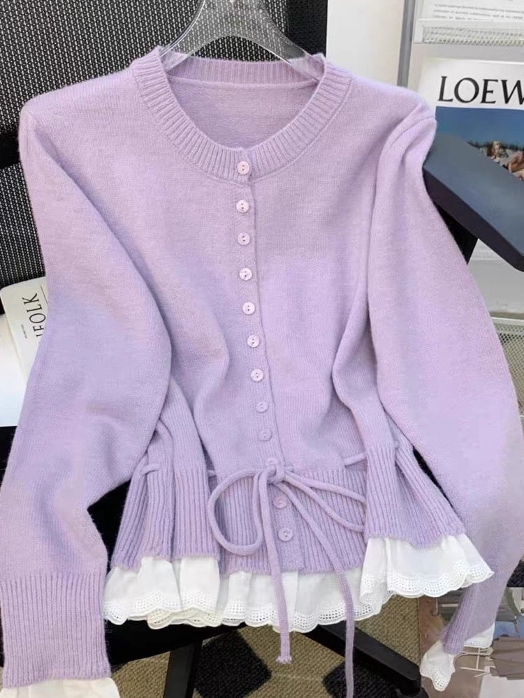 "ウエストリボン×フリル裾ニット"
