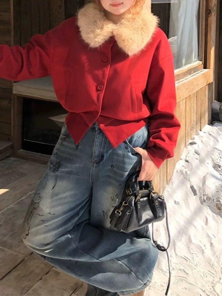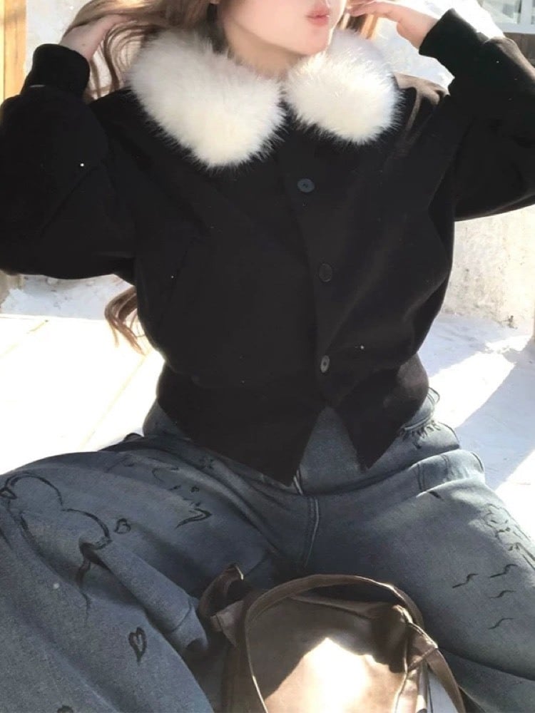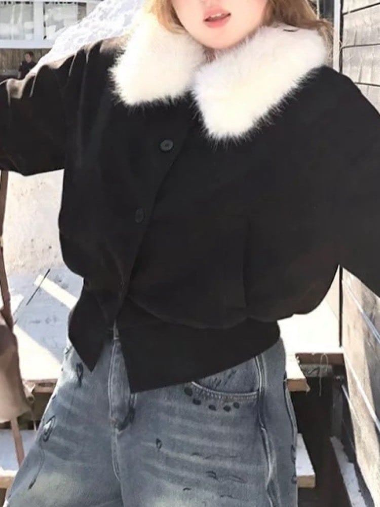 甘さも強さもファーで纏う ショート丈ジャケット モード カジュアル 甘辛 ミックス おしゃれ 体型カバー 大きいサイズ 韓国 CH11376