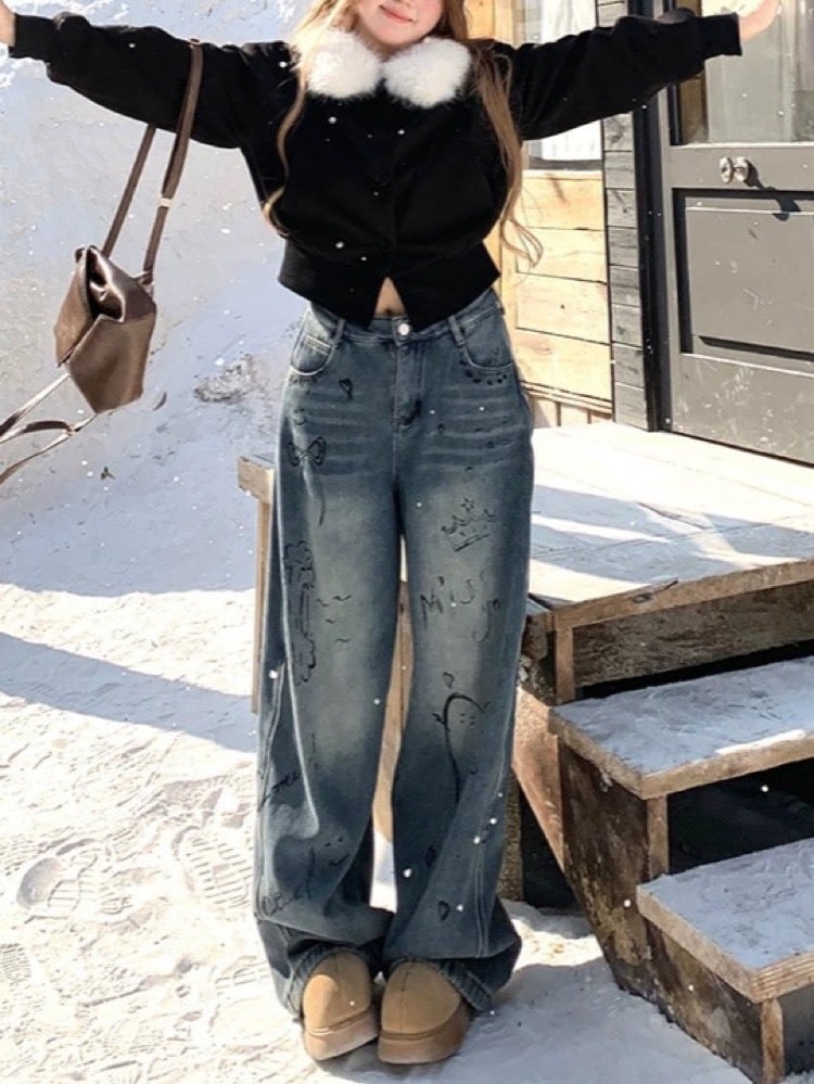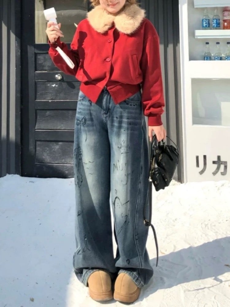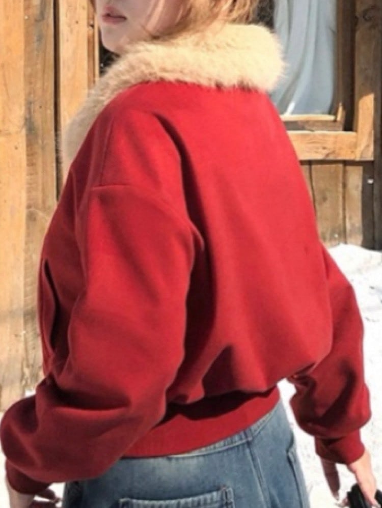 ふわっとした襟ファーが目を惹く、韓国トレンド感たっぷりのショート丈ブルゾン。