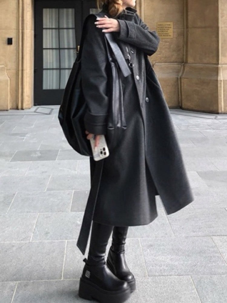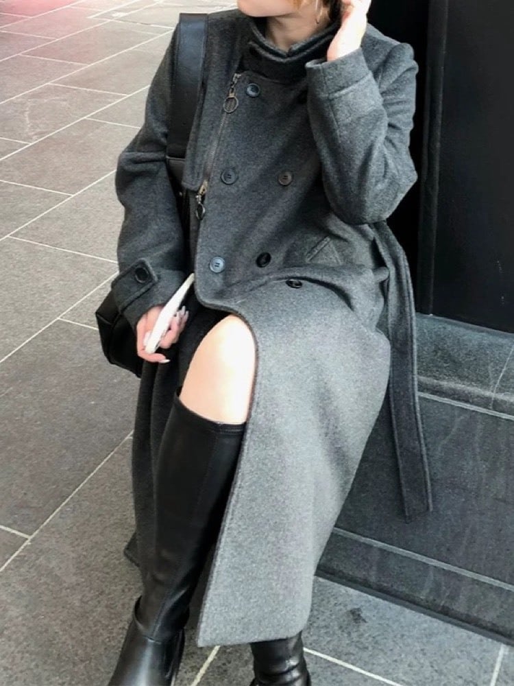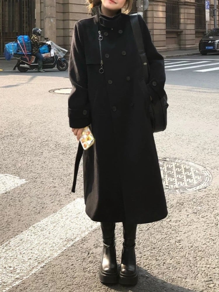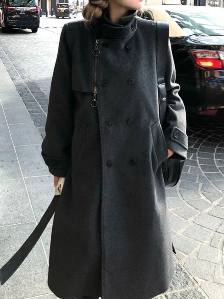 無駄を削ぎ落とした ダブルブレストロングコート 秋冬 スタンドカラー おしゃれ 上品 着映え おでかけ きれいめ カジュアル 細見え 大きいサイズ 韓国 CH11373