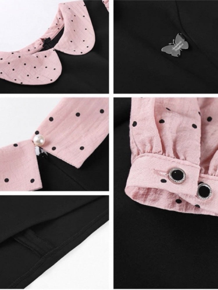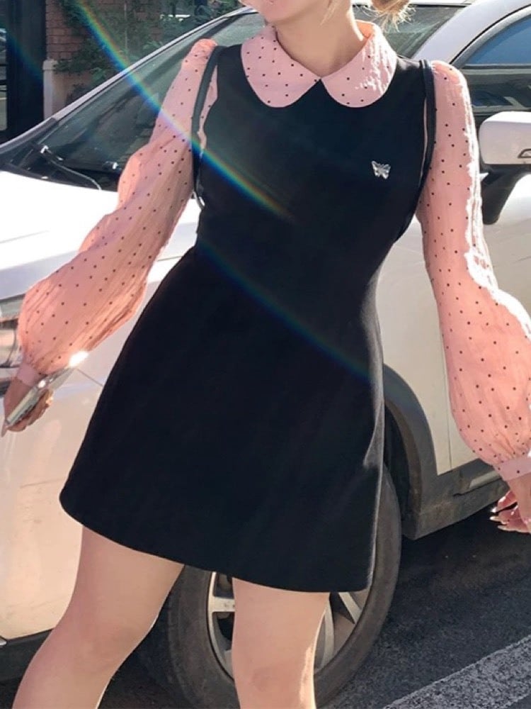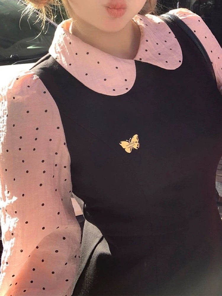 シアー感のあるドット柄スリーブと丸襟デザインが、写真映えも抜群。