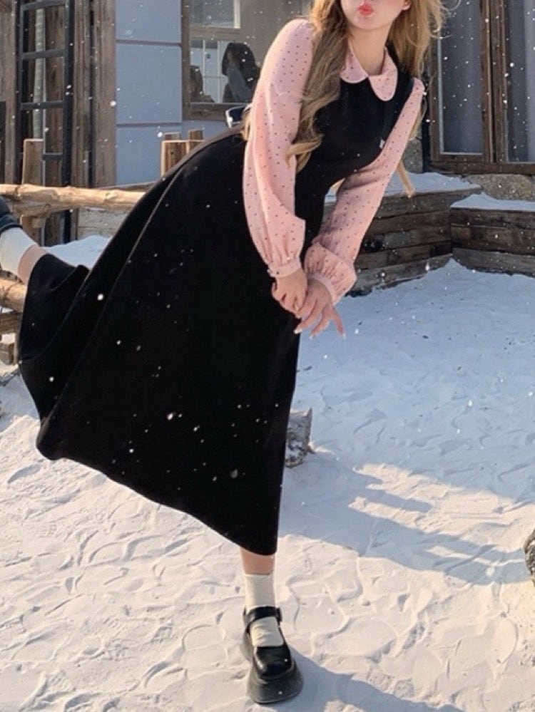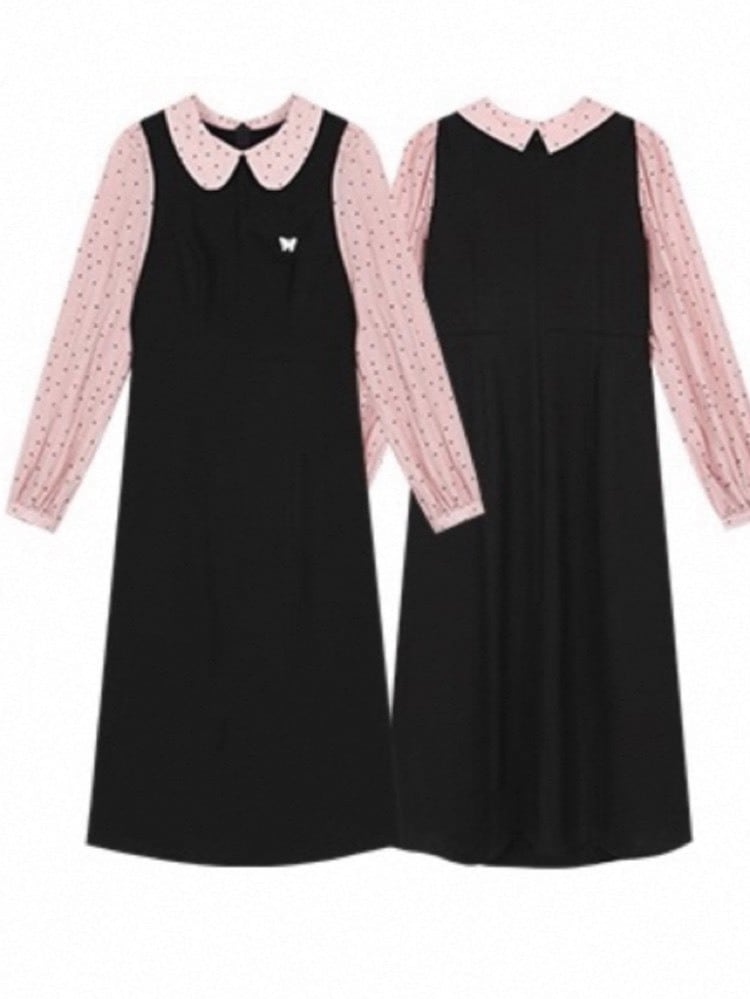 丈が選べる 上品ガーリーなときめきを シアードットジャンスカ風ワンピース 丸襟 大人かわいい クラシカル おしゃれ 上品 デート おでかけ 体型カバー 大きいサイズ 韓国 CH11371
