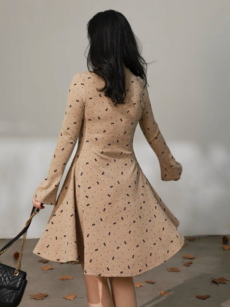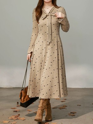 小さなリボンモチーフ入りのドット柄が散りばめられた、大人可愛いフェミニンワンピース♡